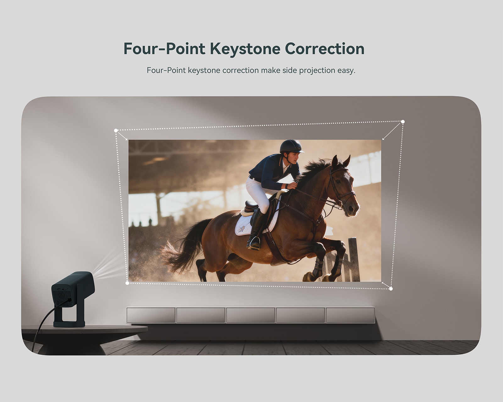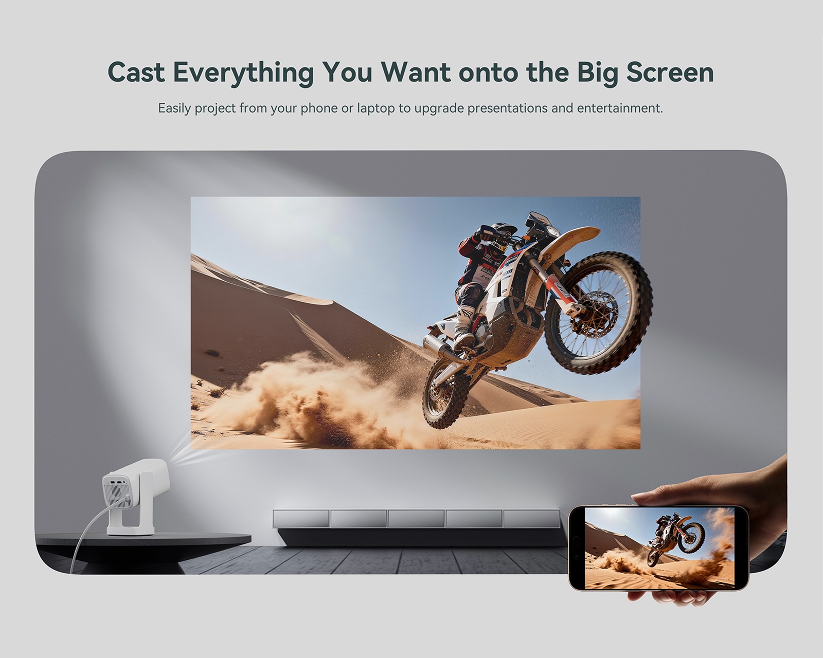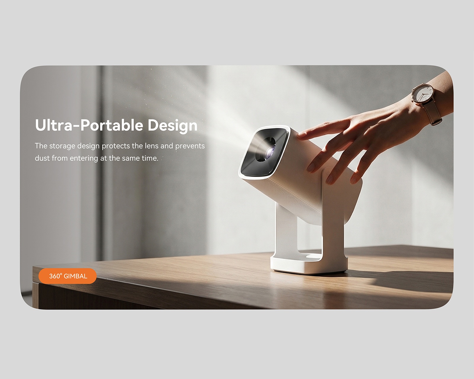 Wanbo Cube 1 ist ein intelligenter Projektor von Wanbo, der eine beeindruckende Bildqualität mit einer Auflösung von 720p und 200 ANSI-Lumen bietet. Er ist mit Android TV 11 ausgestattet, was den Nutzern Zugang zu über 7.000 Apps, einschließlich Netflix, Prime Video und YouTube, gibt, alles ohne die Notwendigkeit externer Dongles. Mit seinem kompakten und leichten Design wiegt er nur 0,9 kg, was ihn einfach zu transportieren und zu lagern macht. Das Gerät verfügt über ein 360° Gimbal-Stativ, um die Projektion einfach auf Wände, Decken oder Tische aus jedem Winkel auszurichten.Wanbo Cube 1 ist mit dem Fokus auf Benutzerfreundlichkeit und Bildqualität konzipiert. Er hat eine vier-Punkte Keystone-Korrektur, die es ermöglicht, alle Ecken des Bildes so anzupassen, dass ein perfektes Rechteck entsteht, auch bei Seitenprojektionen. Die elektrische Fokussierung erleichtert das Feineinstellen des Bildes auf messerscharfe Klarheit mit Hilfe einer Fernbedienung. Das integrierte 8W Lautsprechersystem liefert einen reichen und tiefen Klang, der das Film- und Musikerlebnis verbessert. Darüber hinaus sorgt der lautlose Ventilator mit 28 dB dafür, dass Ihre Ansicht nicht durch Lärm gestört wird.