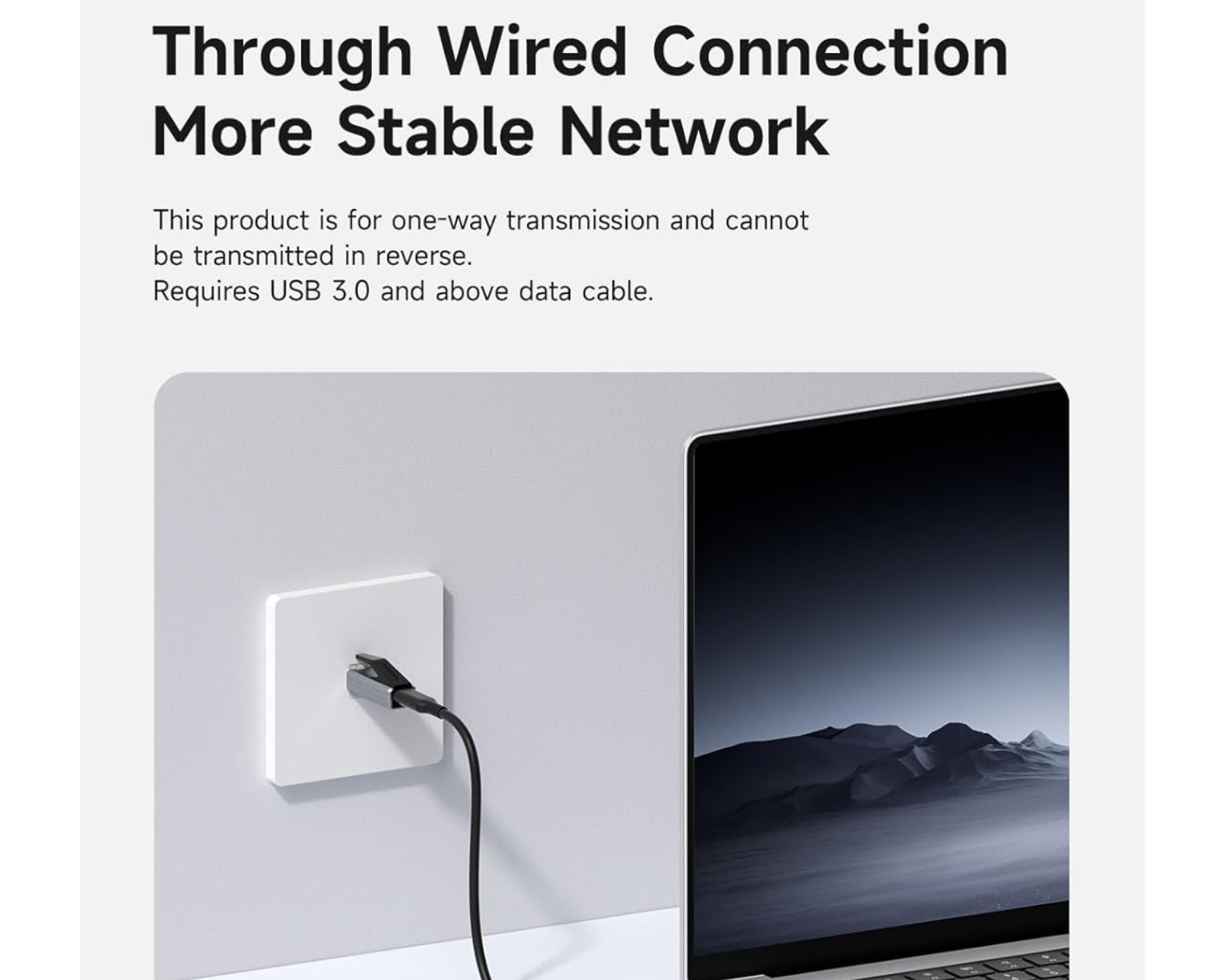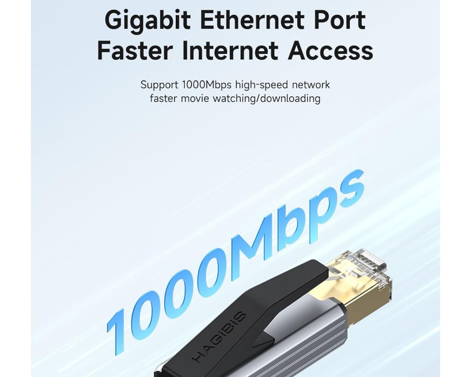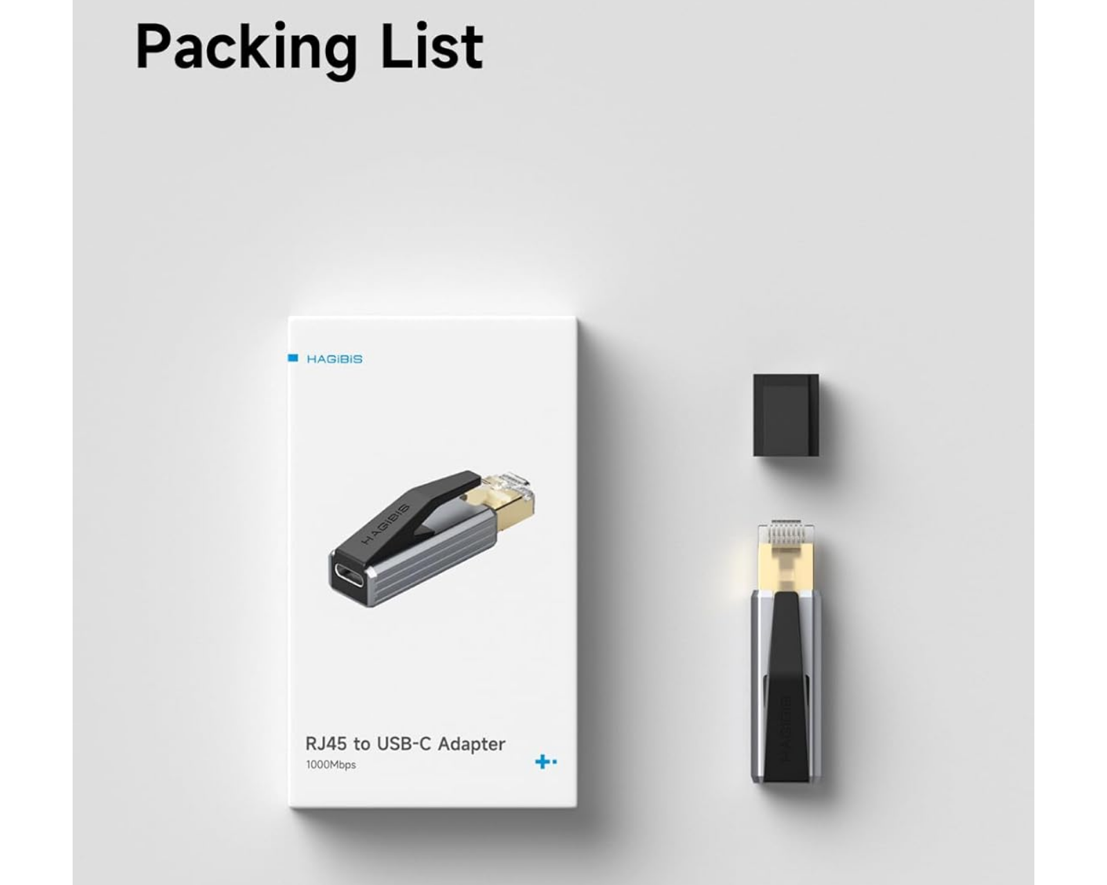 USB C zu RJ45 Adapter ist ein Produkt von Hagibis, das die Verbindung von Geräten mit USB-C über einen RJ45-Port zu einem Netzwerk ermöglicht. Das Design des Adapters mit RJ45-Stecker zu USB-C-Buchse erlaubt es, USB-C zu C oder A zu C Kabel für den Internetzugang einfach zu verwenden. Er unterstützt Geschwindigkeiten von bis zu 1000 Mbps und ist mit einer Vielzahl von Geräten kompatibel.Die Verarbeitungsqualität des Adapters zeichnet sich durch ein kompaktes Design aus, das 5,3 x 1,8 x 1,5 cm misst und etwa 25 g wiegt. Er ist mit dem Realtek RTL8153E-Chip ausgestattet, der zu hoher Stabilität und niedrigem Stromverbrauch beiträgt. Der Adapter ist plug-and-play und benötigt keine Treiber für mehrere Betriebssysteme, einschließlich Windows und macOS. Er ist außerdem kompatibel mit USB 4.0, 3.2, 3.1 und 3.0 sowie Thunderbolt 3 und 4, was ihn vielseitig für die Verwendung mit verschiedenen Geräten wie Laptops, Smartphones und Tablets macht.