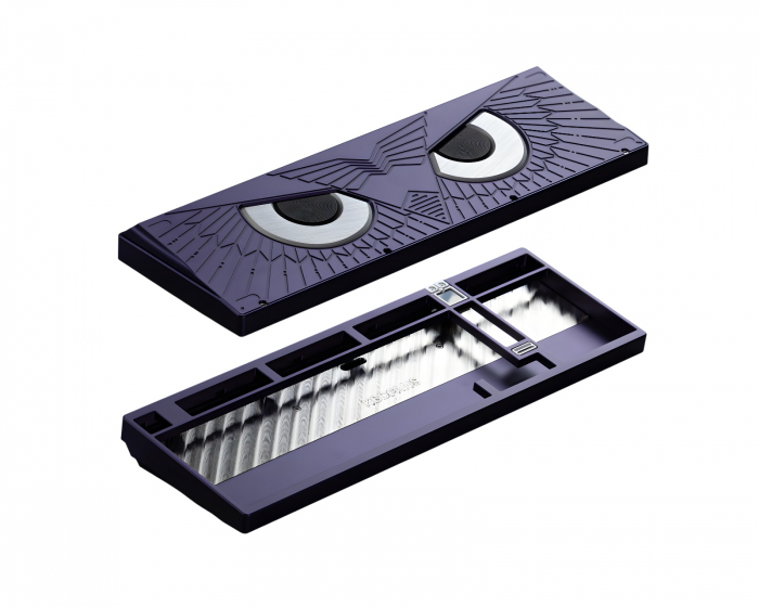 Athena 1800 ist eine mechanische Barebone-Tastatur von KBDfans, die Technologie und Design kombiniert. Sie verfügt über ein modernes 1800-Layout mit einem LED-Bildschirm, der Anpassungen wie GIF-Animationen ermöglicht. Die Tastatur richtet sich an Enthusiasten mit höheren Ansprüchen an sowohl Tipp-Erlebnis als auch Ästhetik.Die Tastatur bietet eine solide Verarbeitungsqualität aus eloxiertem Aluminium und wird mit verschiedenen Optionen für Innenschalen angeboten, darunter Edelstahl, Messing und Kohlefaser. Es gibt mehrere Montagemöglichkeiten wie Top-Mount und PCB-Silikon-Gummilager, die entweder ein festes und direktes Tippgefühl oder ein gedämpftes und schalldichtes Gefühl bieten. Das Design umfasst auch ein sorgfältig graviertes Eulenmotiv auf der Rückplatte sowie einen Lichtdiffusor, der eine subtile Hintergrundbeleuchtung schafft.