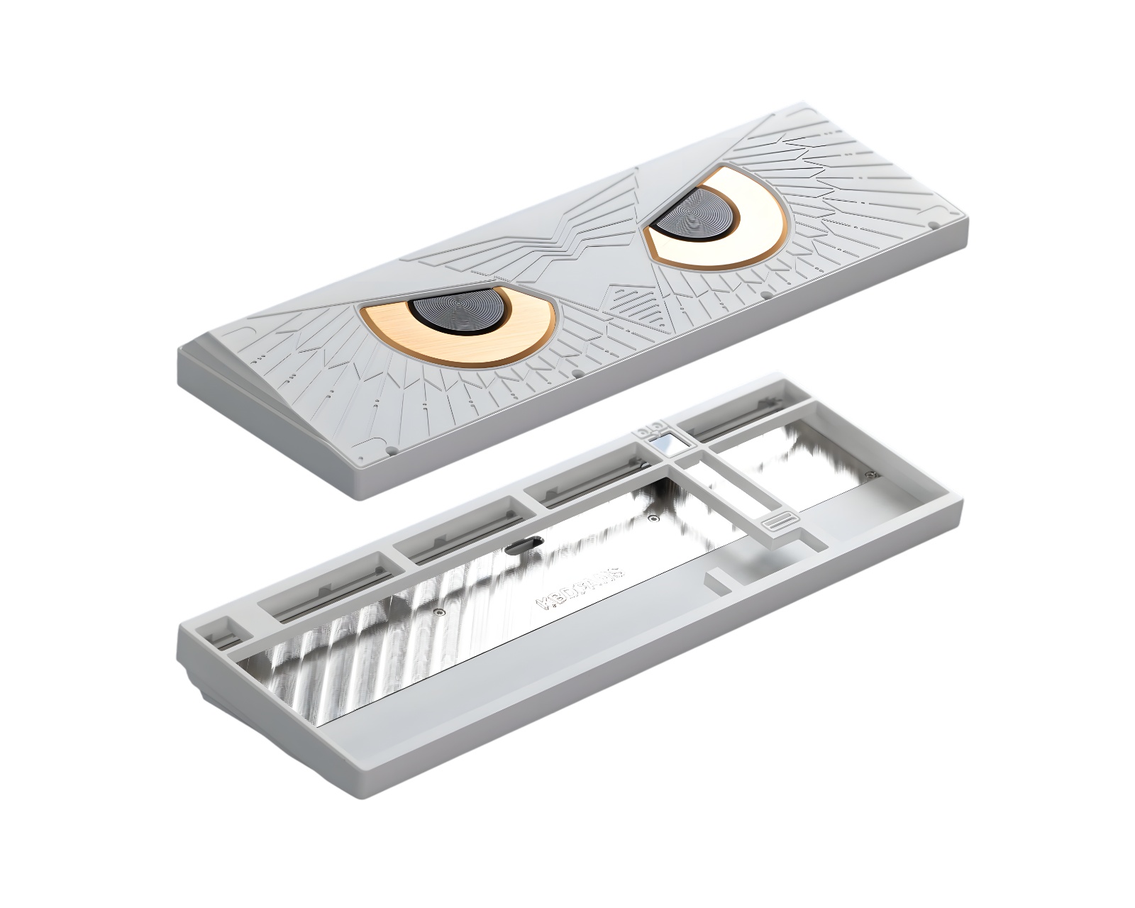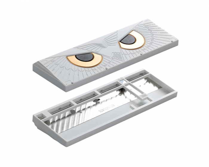 Athena 1800 ist eine mechanische Barebone-Tastatur von KBDfans, die Technologie und Design kombiniert. Sie verfügt über ein modernes 1800-Layout mit einem LED-Bildschirm, der Anpassungen wie GIF-Animationen ermöglicht. Die Tastatur richtet sich an Enthusiasten mit höheren Ansprüchen an sowohl Tipp-Erlebnis als auch Ästhetik.Die Tastatur bietet eine solide Verarbeitungsqualität aus eloxiertem Aluminium und wird mit verschiedenen Optionen für Innenschalen angeboten, darunter Edelstahl, Messing und Kohlefaser. Es gibt mehrere Montagemöglichkeiten wie Top-Mount und PCB-Silikon-Gummilager, die entweder ein festes und direktes Tippgefühl oder ein gedämpftes und schalldichtes Gefühl bieten. Das Design umfasst auch ein sorgfältig graviertes Eulenmotiv auf der Rückplatte sowie einen Lichtdiffusor, der eine subtile Hintergrundbeleuchtung schafft.
