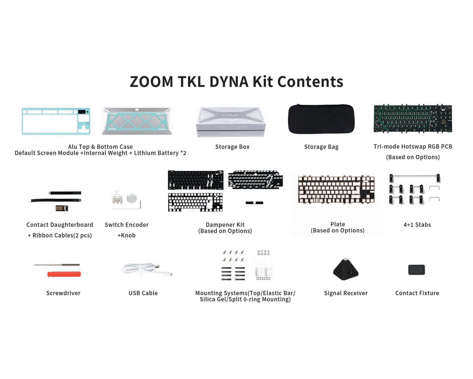 Bitte beachten Sie, dass die Tastatur montiert werden muss, Schalter und Keycaps sind nicht enthalten.ZOOM TKL DYNA ist ein Barebones-Kit von Wuque Studio, das ein vielseitiges Benutzererlebnis bietet. Das modulare Design ermöglicht Anpassungen des Gehäuses und der Bedienelemente, was den Benutzern die Freiheit gibt, ihre Einstellungen anzupassen. Das Gerät hat ein Gehäuse aus 6063 Aluminium und ein schraubenloses Kugelverschlusssystem, um den einfachen Wechsel zwischen verschiedenen Montagemöglichkeiten zu ermöglichen. Es unterstützt sowohl kabelgebundene Verbindungen über USB-C als auch drahtlose Verbindungen über Bluetooth 5.4 und 2.4 GHz.