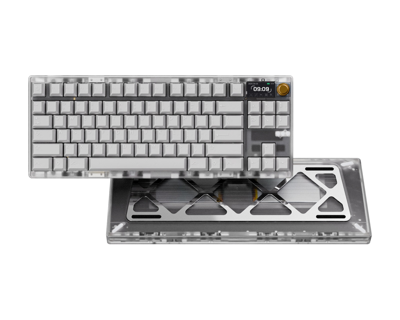 Bitte beachten Sie, dass die Tastatur Montage erfordert, keine Switches und Keycaps enthalten sind.ZOOM TKL DYNA ist ein Barebones-Kit von Wuque Studio, das ein vielseitiges Benutzererlebnis bietet. Das modulare Design ermöglicht Anpassungen des Bildschirms und der Bedienelemente, was den Benutzern Freiheit bei der Anpassung ihrer Einstellungen gibt. Das Gerät verfügt über ein Gehäuse aus 6063 Aluminium und ein schraubenloses Kugellagersystem, um einfach zwischen verschiedenen Montageoptionen zu wechseln. Es unterstützt sowohl eine kabelgebundene Verbindung über USB-C als auch eine drahtlose Verbindung über Bluetooth 5.4 und 2.4 GHz.