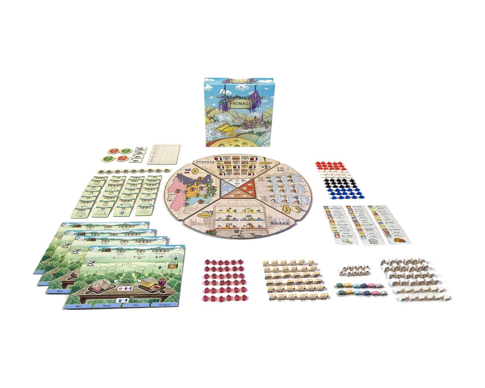Fromage ist ein Brettspiel, in dem die Spieler die Rollen französischer Käsemacher zu Beginn des 20. Jahrhunderts übernehmen. Die Spieler platzieren ihre Arbeiter, um Käse herzustellen und Ressourcen von dem Teil des Bretts, der ihnen zugewandt ist, zu sammeln. Die Spieler streben danach, der prestigeträchtigste Käsemacher in Frankreich zu werden, indem sie ihre Käsefabrik effektiv verwalten und aufrüsten.Das System zur Sammlung von Prestigepunkten durch den Verkauf von Käse an vier verschiedene Orte trägt zur strategischen Tiefe des Spiels bei. Das Spiel ist für 1 bis 4 Spieler konzipiert und hat eine Spielzeit von etwa 30 Minuten. Es richtet sich an Spieler ab 14 Jahren, was es sowohl für Familie als auch für Freunde geeignet macht. Das Spielbrett rotiert, nachdem die Arbeiter in jeder Runde platziert wurden, wodurch der hergestellte Käse altert und jedem Spieler neue Möglichkeiten in seiner Strategie bietet.