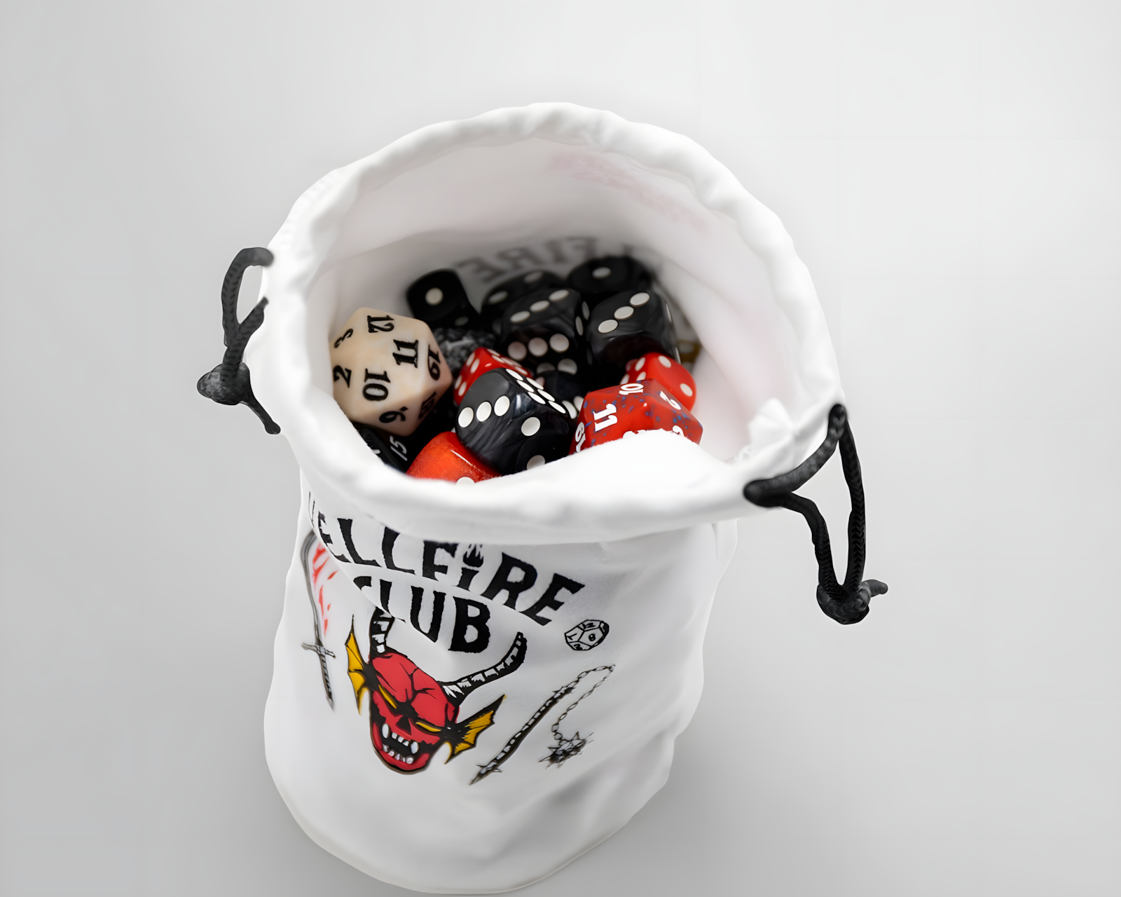 Stranger Things: Hellfire Club ist ein Würfeltasche von Gamegenic, die ein weiches und luxuriöses Gefühl mit ihrem samtartigen Material bietet. Die Würfeltasche ist so gestaltet, dass sie über 130 RPG-Würfel aufbewahrt und transportiert, was sie ideal für die Verwendung in Rollenspielen, Brettspielen und Kartenspielen macht. Sie hat einen integrierten Boden, der die Tasche aufrecht hält und sicher mit dem Zugband verschlossen wird, um zu verhindern, dass die Würfel herausfallen.Die Würfeltasche ist aus synthetischem Textilmaterial gefertigt und hat die Maße 90 x 170 mm. Sie ist so konzipiert, dass sie funktional und leicht zugänglich für den Einsatz in verschiedenen Spielesituationen ist. Das ikonische Hellfire Club-Motiv aus der Serie Stranger Things™ bietet einen interessanten visuellen Aspekt und eine Verbindung zur Popkultur. Die Verpackung besteht aus einem Karton, der den Inhalt schützt.