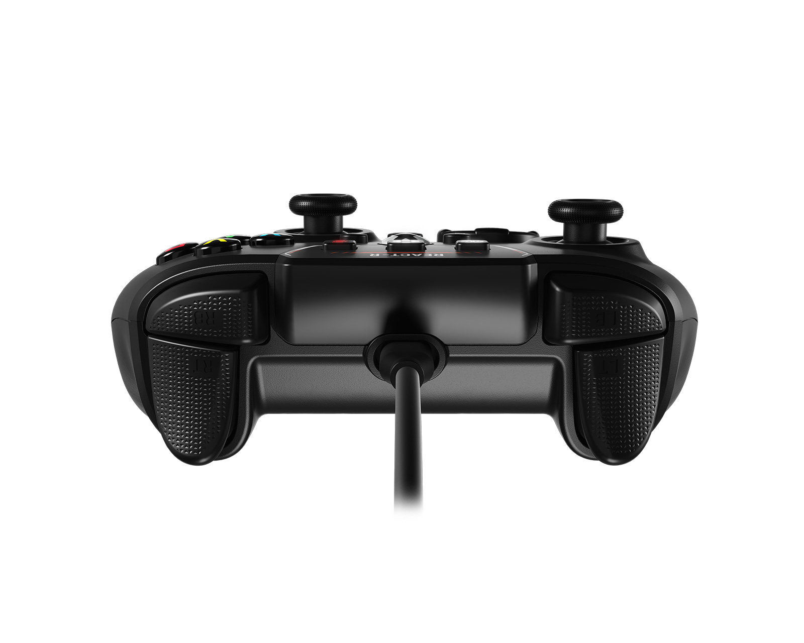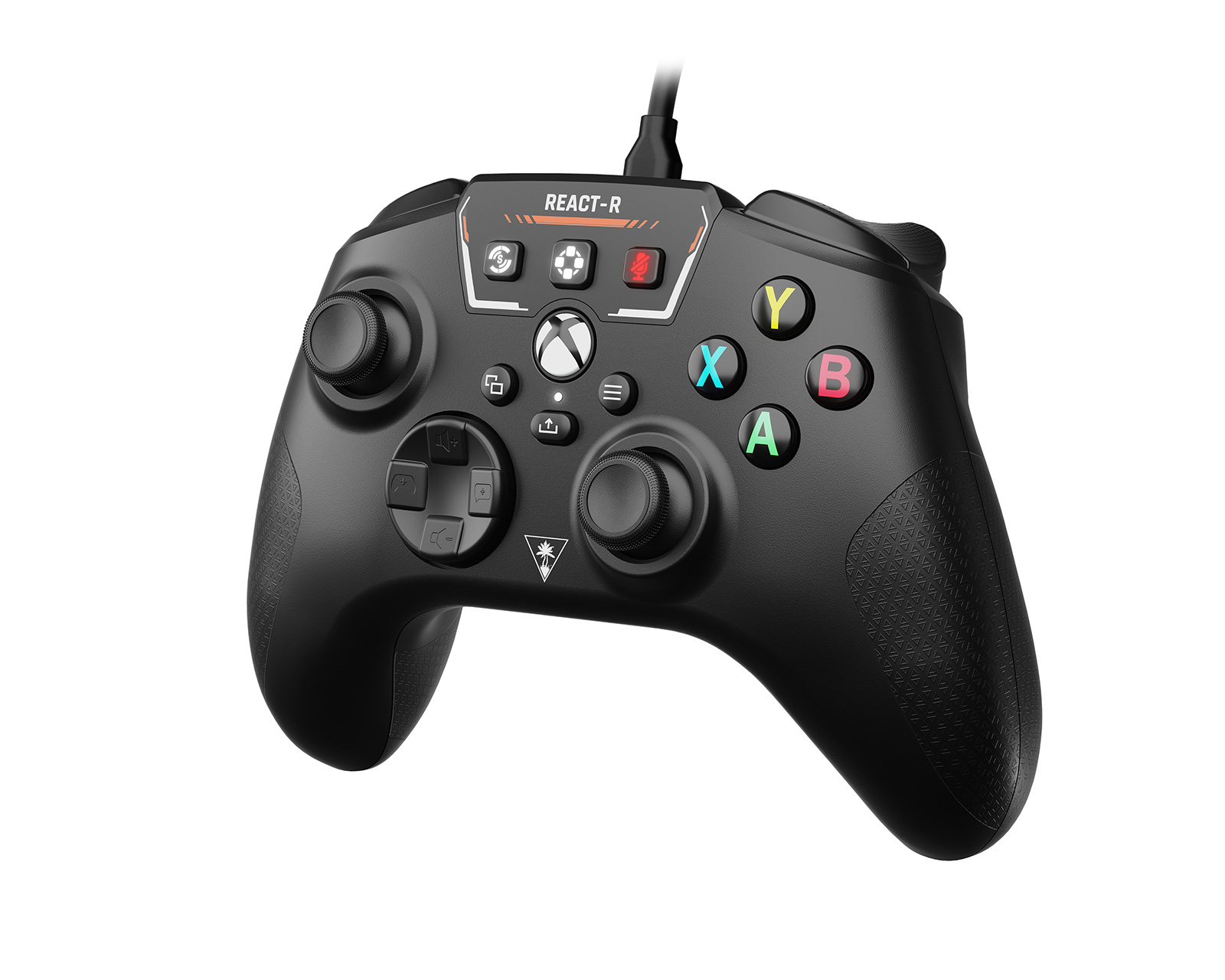 Turtle Beach REACT-R ist ein kabelgebundenes Gamepad für Xbox Series X, Xbox Series S, Xbox One und PC. Es bietet ein ergonomisches Design mit strukturierten Griffen und Triggern, was ein angenehmes Spielerlebnis während langer Spielsitzungen ermöglicht. Mit einem Gewicht von 271 g (ohne Kabel) und einem mitgelieferten 2,5 m USB-C-Kabel gibt es dem Spieler die Freiheit, weiter vom Bildschirm entfernt zu sitzen.Das Gamepad verfügt über fortschrittliche Audiofunktionen, einschließlich Sofortzugriff auf Superhuman Hearing, welches die Geräusche leiser Schritte und Waffennutzung verstärkt, um einen taktischen Vorteil zu bieten. Mit zwei belegbaren Schnelltasten kann der Benutzer die Steuerung für schnellere Reaktionen anpassen. Die Vibrationen in den Griffen sorgen für ein immersiveres Spielerlebnis. Ein 3,5 mm Audioport ermöglicht eine einfache Verbindung von kompatiblen Headsets, was die Audioqualität während des Spiels verbessert. REACT-R ist offiziell von Microsoft lizenziert, was Kompatibilität und Zuverlässigkeit gewährleistet.