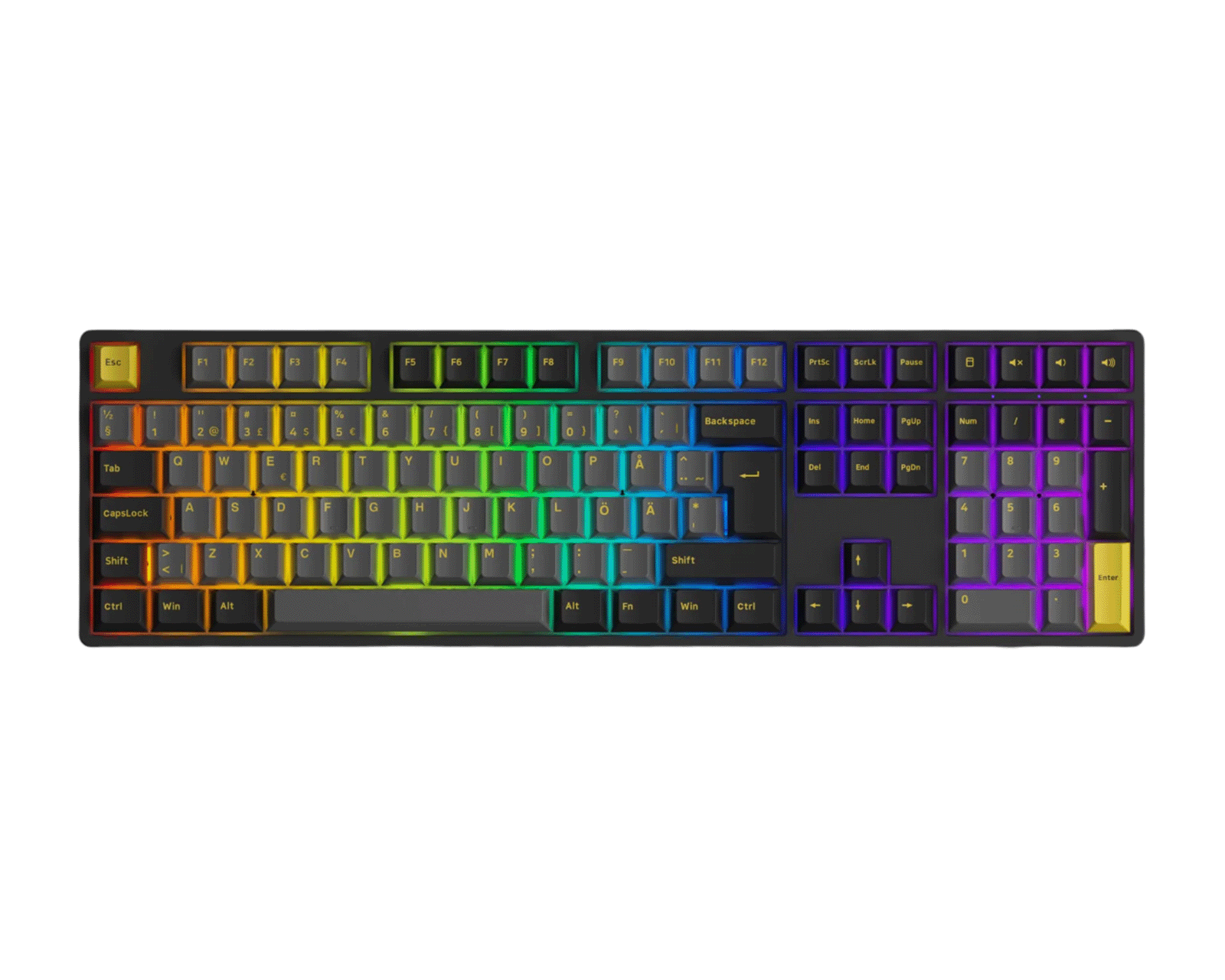 DEMO: Nachkauf- und Testexemplar. Guter Zustand.Akkogear 5108B Plus S Black & Gold ist die Tastatur für alle, die Funktionalität mit Stil verbinden möchten. Mit der RGB-LED-Hintergrundbeleuchtung können Sie eine einzigartige Atmosphäre schaffen, die zu Ihnen passt. Die Tastatur ist außerdem mit austauschbaren Schaltern ausgestattet, sodass Sie sowohl das Spielgefühl als auch den Klang genau an Ihre Bedürfnisse anpassen können. Das langlebige PBT-Double-Shot-Design stellt sicher, dass die Zeichen auch bei intensiver täglicher Nutzung mit der Zeit nicht abgenutzt werden oder verblassen.