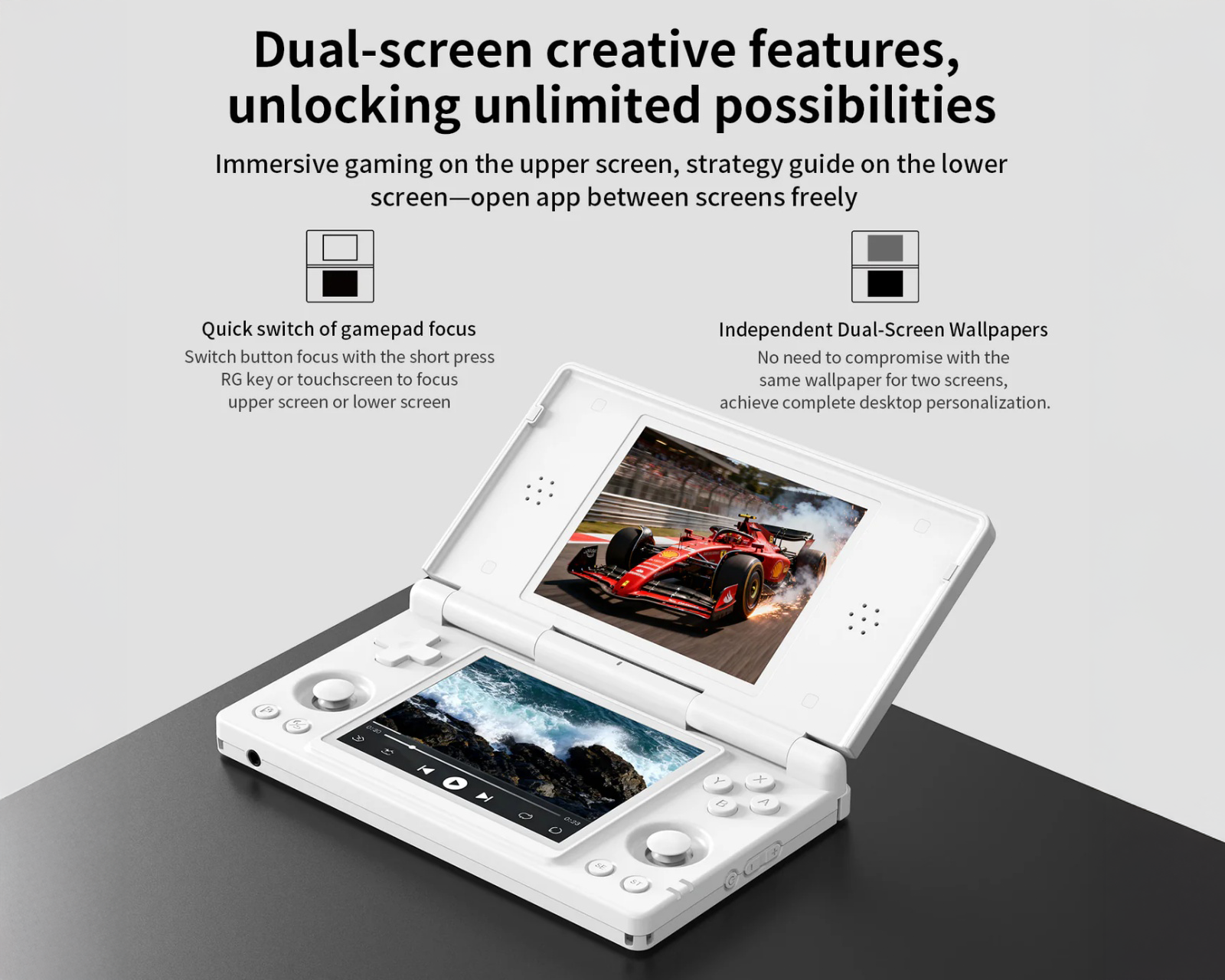 DEMO: Återköp och testexemplar. Bra skick.RG DS ist ein Retro-Emulator von Anbernic, der entwickelt wurde, um Spielerlebnisse wie Nintendo DS und andere klassische Emulatoren zu ermöglichen. RG DS ist mit zwei 4-Zoll kapazitiven IPS-Touchscreens mit Stylus-Unterstützung ausgestattet. Das Betriebssystem des Geräts ist Android 14, was die Nutzung unter anderem des Play Stores und anderer Google-Dienste ermöglicht.