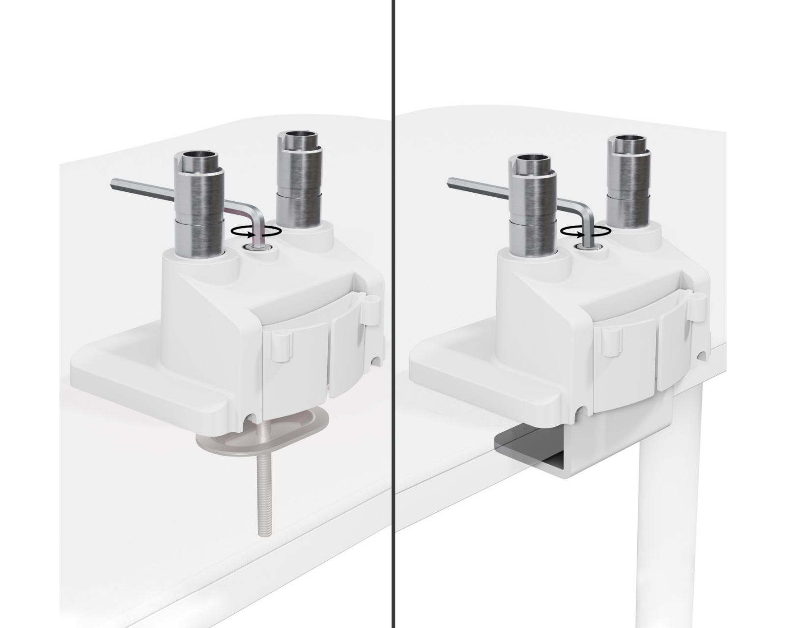 Der Bildschirmständer besteht aus Stahl und bietet hohe Haltbarkeit und Stabilität. Mit Neigungsfunktionen von +45° bis -45° und einem Schwenkbereich von +90° bis -90° kann der Winkel jedes Bildschirms für eine ergonomisch korrekte Position angepasst werden. Die Rotation erfolgt um 360 Grad, was große Flexibilität bei der Nutzung bietet. Die Montage erfolgt mit einer Klemme, was die Installation am Schreibtisch erleichtert. Der Ständer verfügt außerdem über ein integriertes Kabelmanagement, um den Arbeitsbereich ordentlich und frei von Kabeln zu halten.