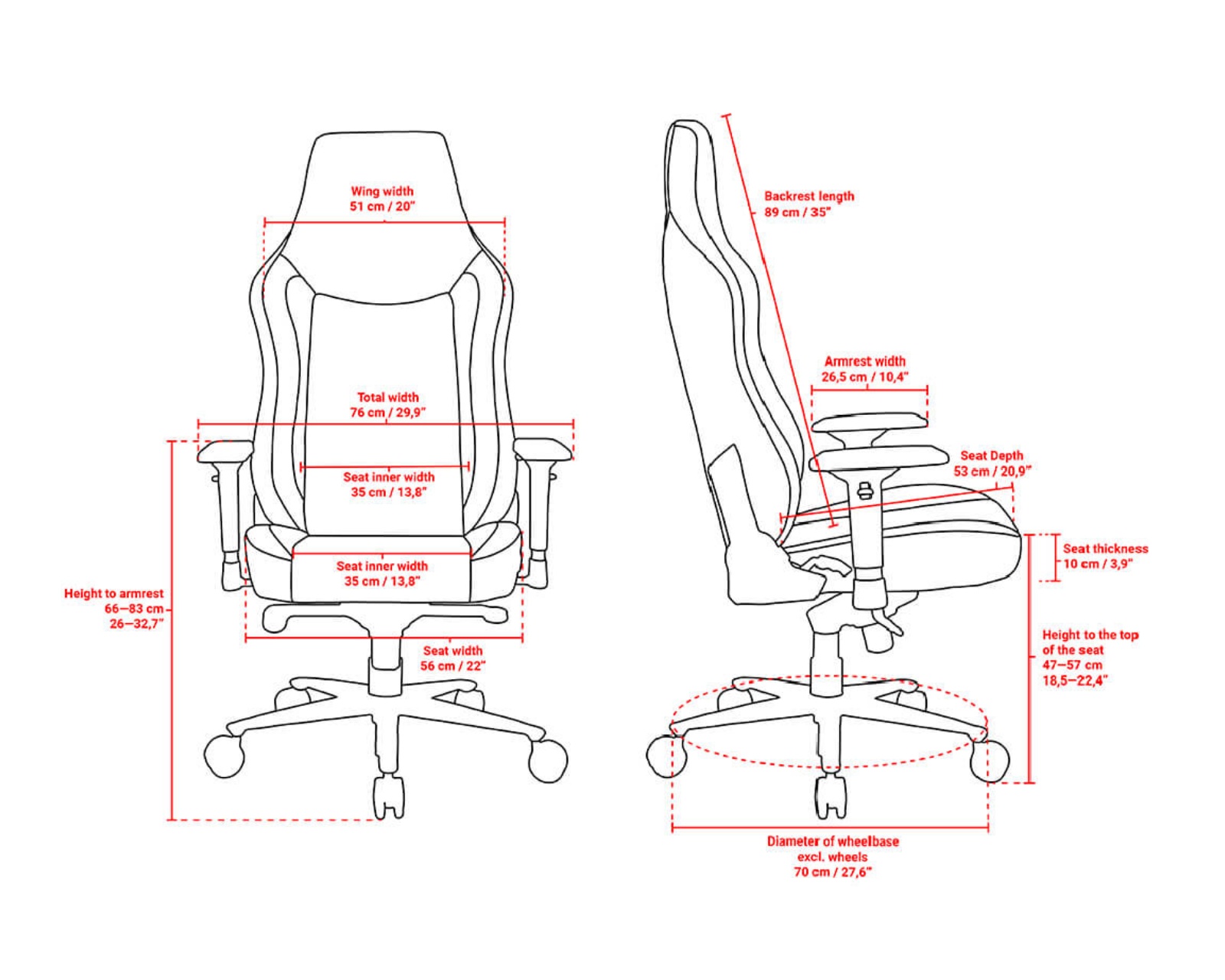 - Verstellbare Armlehnen