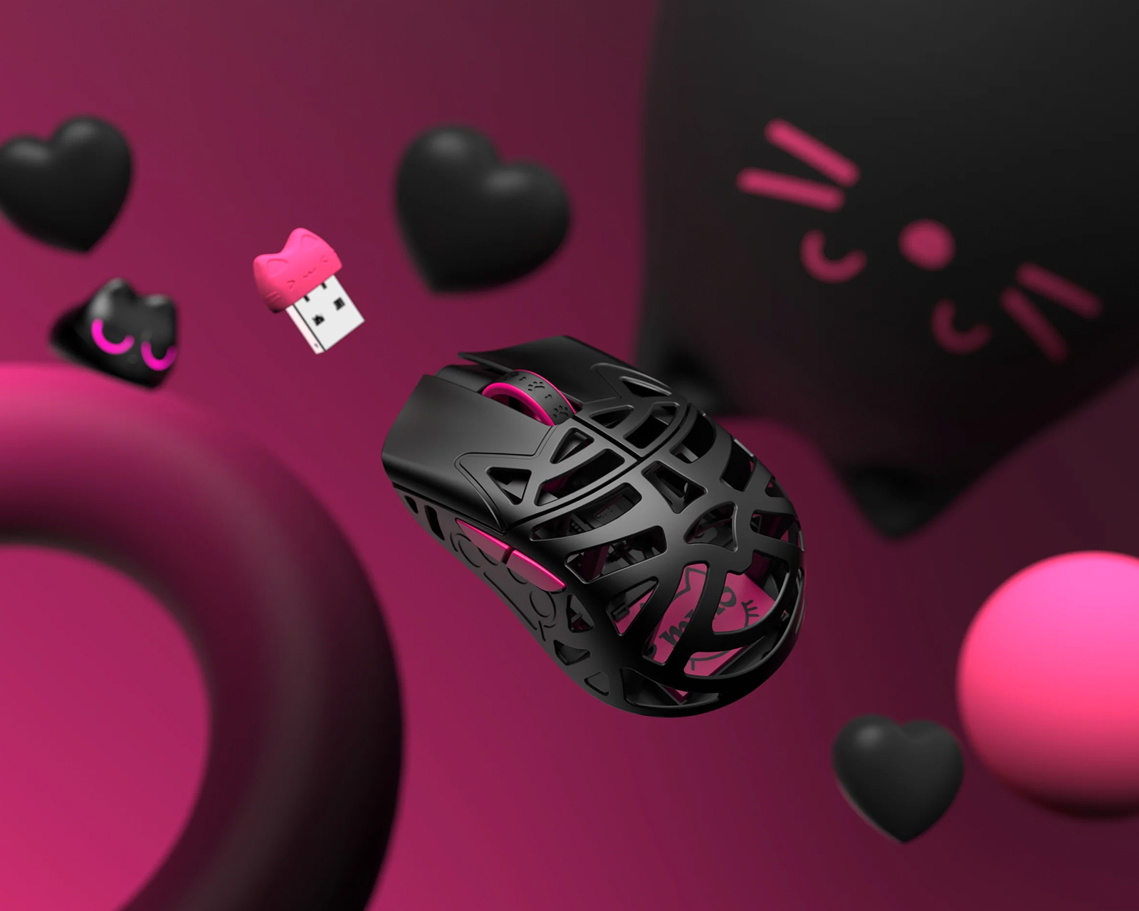 Mit herausragender Liebe zum Detail wird die von Katzen inspirierte Ästhetik durch passende 8K- und 1K-Empfänger ergänzt und schafft so eine elegante und einheitliche Ergänzung für Ihr Setup. Aber es ist nicht nur eine Augenweide. Sein Herzstück ist der leistungsstarke Flaggschiff-Sensor PAW3950HS mit bis zu 30.000 DPI und 750 IPS, der Ihnen blitzschnelle Bewegungen und präzise Mikroanpassungen mit Leichtigkeit ermöglicht.