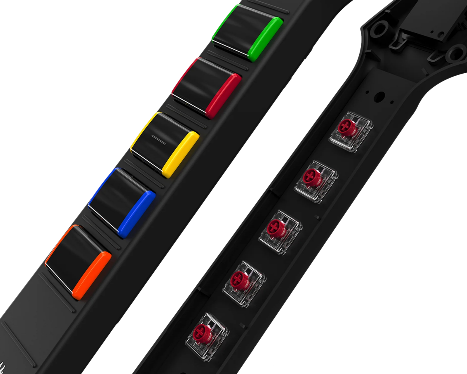 Mit mechanischen Bundstäbchen für hohe Präzision und Reaktionsfähigkeit sorgt die fortschrittliche Hall-Effekt-Strum-Bar für eine lange Lebensdauer mit anpassbaren Aktionspunkten. Das modulare Design ermöglicht es dem Benutzer, den Hals auszutauschen, um ein persönliches Spielerlebnis zu schaffen. Mit zwei analogen Joysticks und einem ergonomischen D-Pad für eine einfache Navigation in Spielmenüs ist die Handhabung des Geräts intuitiv. Darüber hinaus bietet es haptisches Feedback für ein taktileres Spielerlebnis, das das Gefühl des Spielens verstärkt.