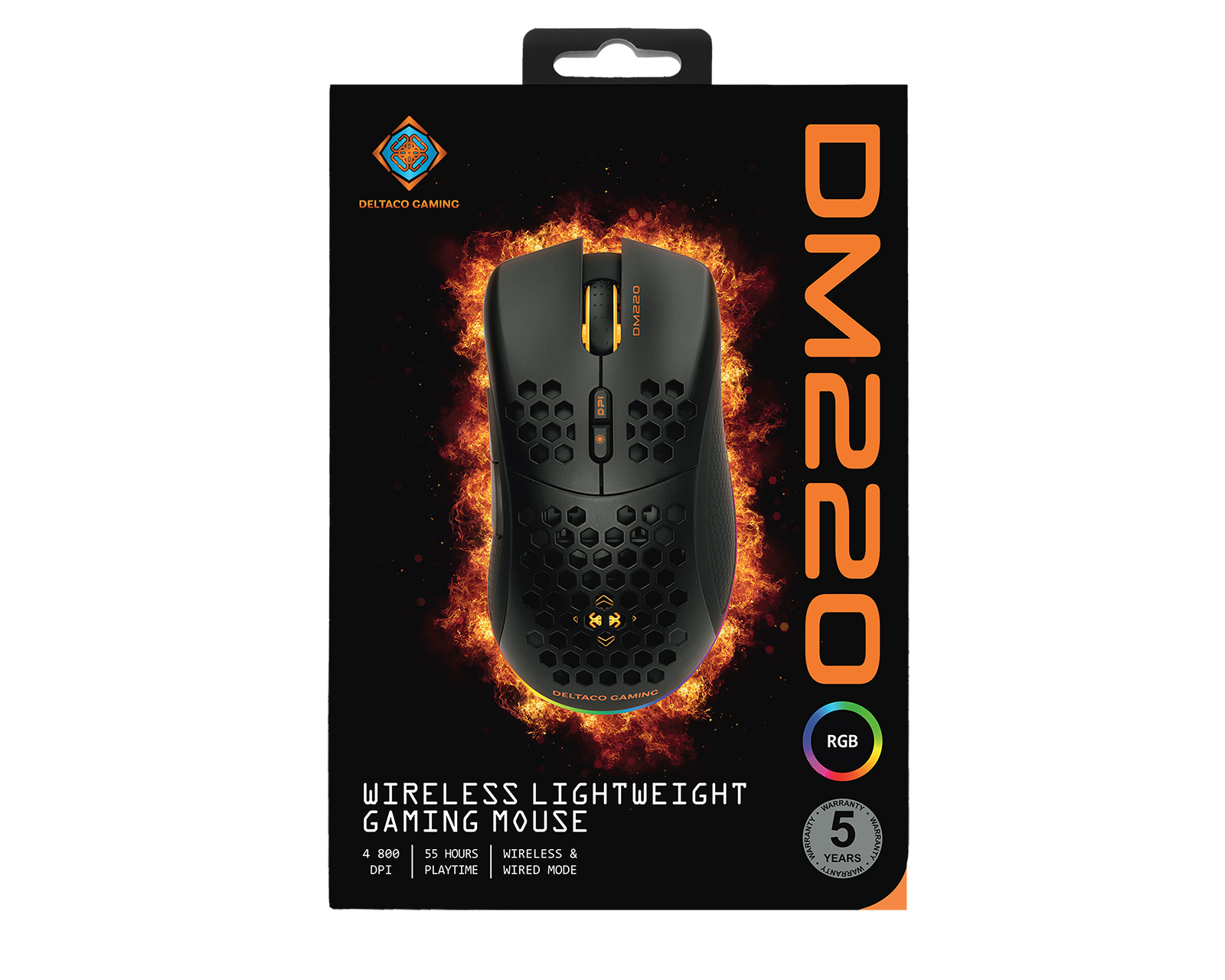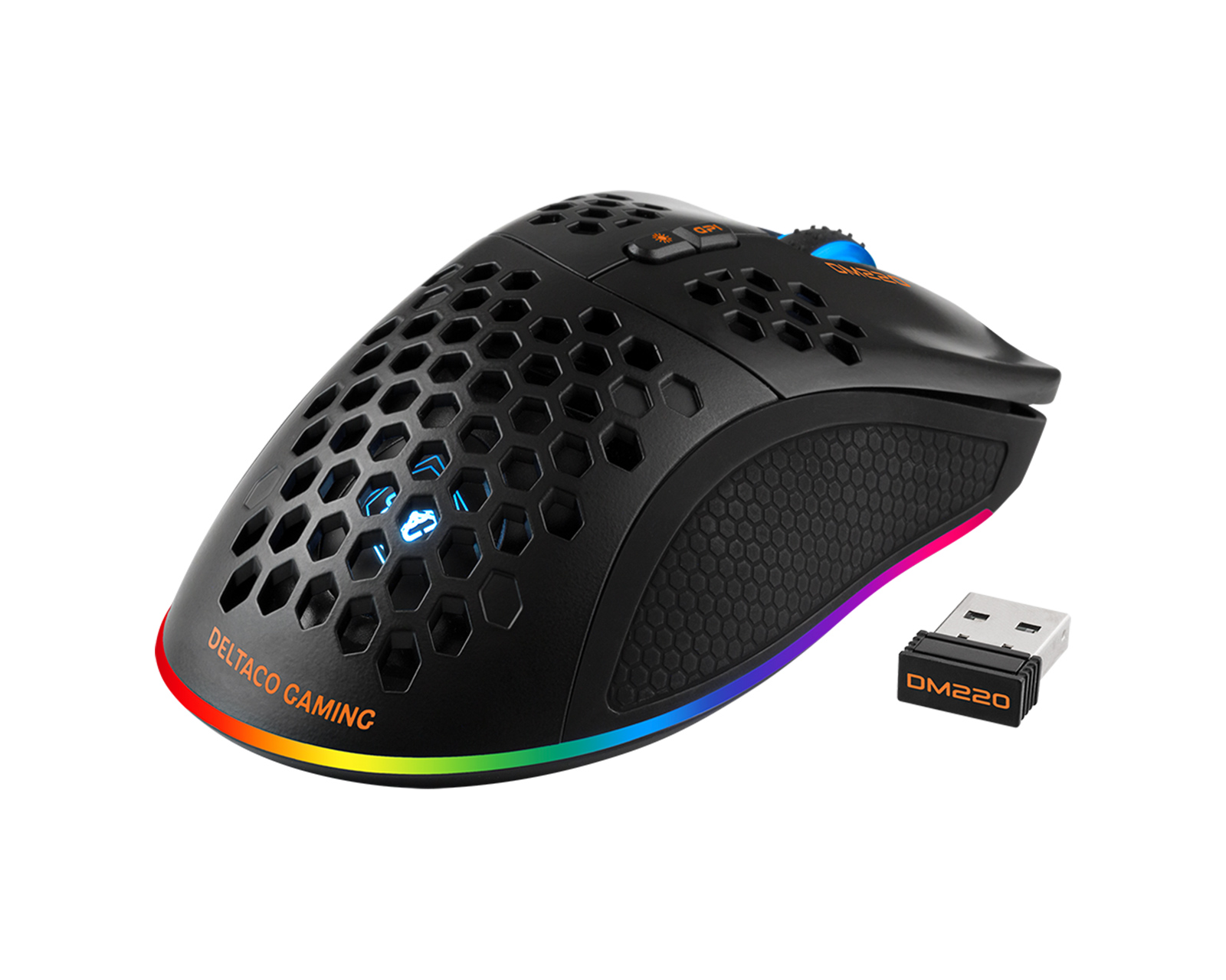DELTACO GAMING DM220 Kabellose ultraleichte Gaming-Maus, 70 g Gewicht, RGB, SPCP6651, 400-6400 DPI, 1000 Hz
