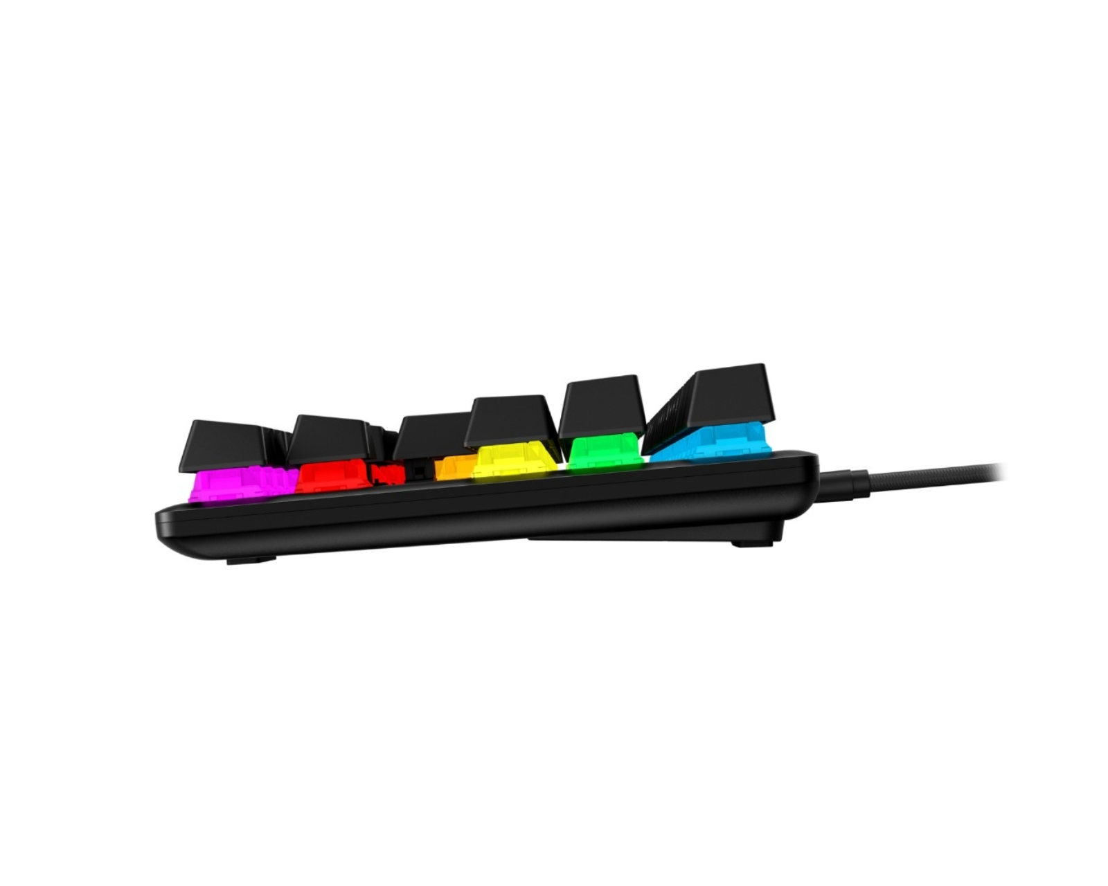 Ausgestattet mit einem minimalistischen TKL-Design (tenkeyless) schafft sie wertvollen Platz auf dem Schreibtisch für Mausbewegungen. Sie ist außerdem mit drei Neigungseinstellungen ausgestattet, um die Ergonomie während der Nutzung zu optimieren. Durch ein abnehmbares USB-C-Kabel wird der Transport der Tastatur erleichtert. Die mitgelieferte HyperX NGENUITY-Software ermöglicht die Anpassung der RGB-Beleuchtung und das Programmieren von Makros.