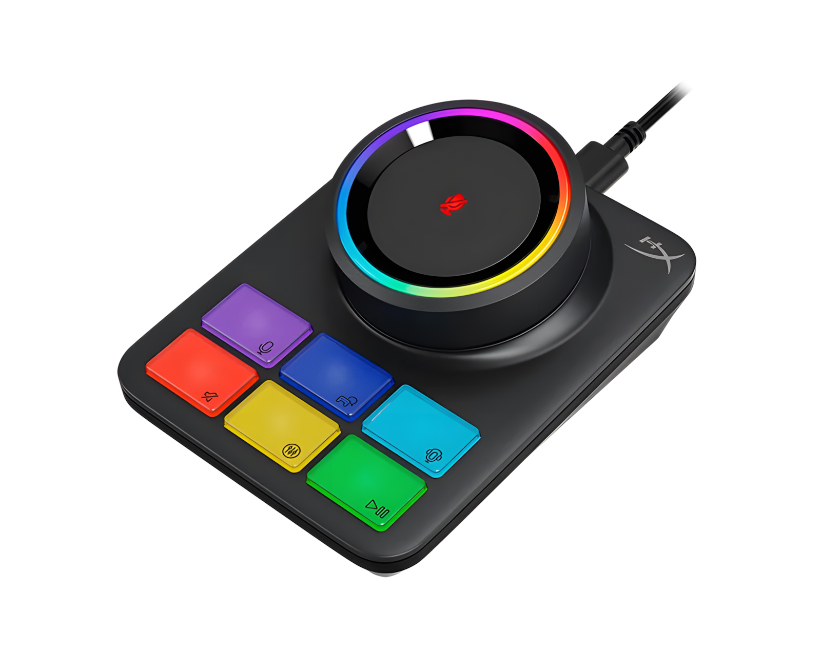 Die Hauptkonstruktion ist robust und mit einem Metallrahmen gebaut, was zur langlebigen Haltbarkeit beiträgt. Die Ohrpolster sind aus Mikrofaser und verfügen über ein Kopfband aus memory foam, das eine komfortable Passform während längerer Spielsitzungen bietet. Die programmierbare RGB-Basisstation fungiert als zentrale Audiosteuerung und ermöglicht die Anpassung von EQ- und Licht-Einstellungen über die HyperX NGENUITY-Software. Das Headset unterstützt außerdem parallele Verbindungen, um Spiele und Anrufe effektiv zu verwalten. Das abnehmbare Mikrofon verfügt über einen integrierten Netzfilter, um klare Kommunikation zu gewährleisten.