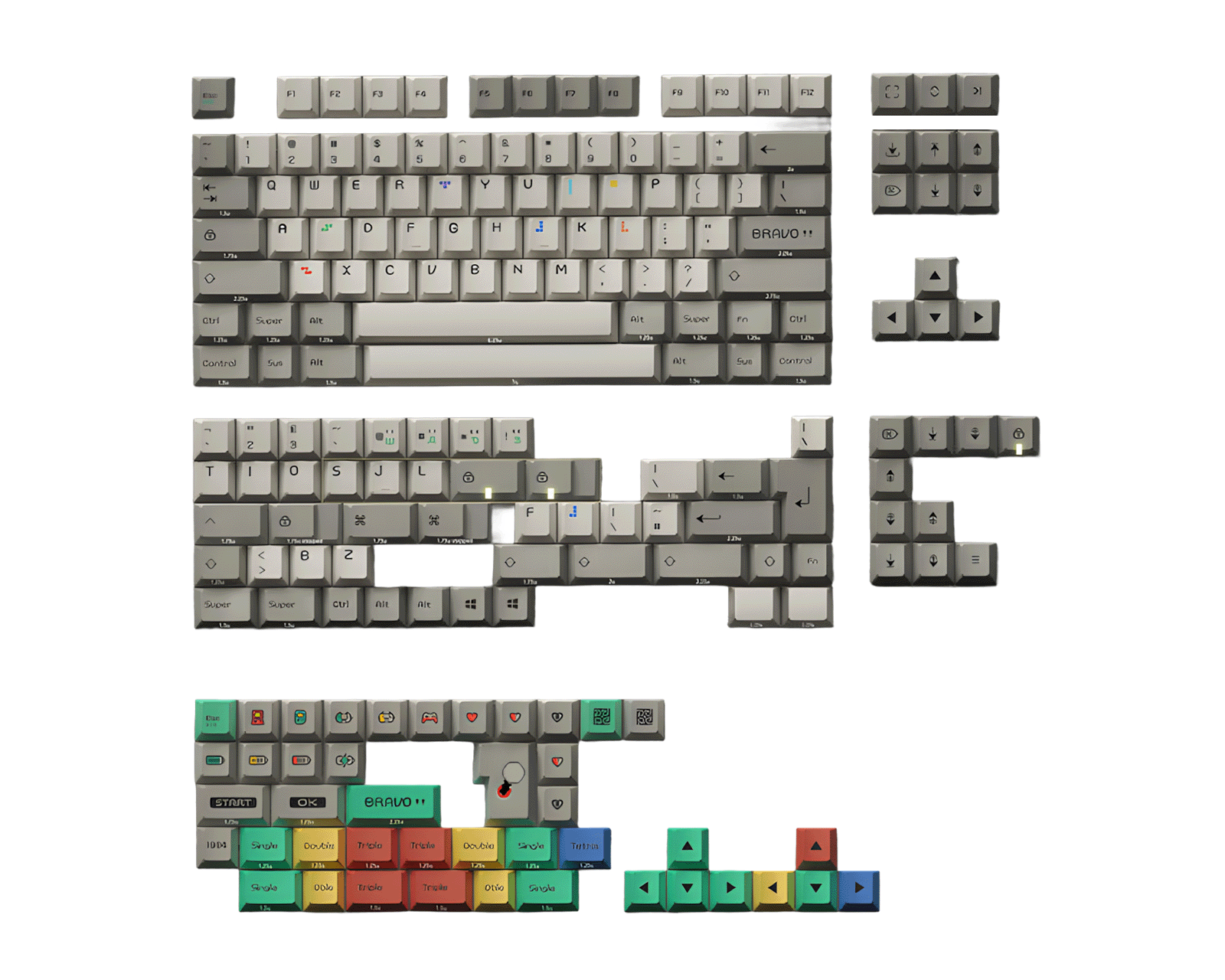 Das Design dieser Keycaps zeichnet sich durch gedämpfte Farben wie Beige und Grau aus, akzentuiert mit einem bläulichen Grünton, der an ältere Monitorbildschirme erinnert. Um das Retro-Feeling zu verstärken, wurden die Schriftarten neu gestaltet und pixelisiert, was ein authentisches Gefühl des Retro-Gamings vermittelt. Die Keycaps haben ein Cherry-Profil und passen zu Cherry MX-Schaltern sowie MX-style Klonen, was sie mit einer Vielzahl von Tastaturen kompatibel macht. Die verwendete Herstellmethode ist Dye-Sub, was zusätzlich zur Haltbarkeit und zur Farbbrillanz beiträgt. Die Einführung einer gestalteten ABS-Tray-Verpackung macht es einfach, die Keycaps sicher aufzubewahren.