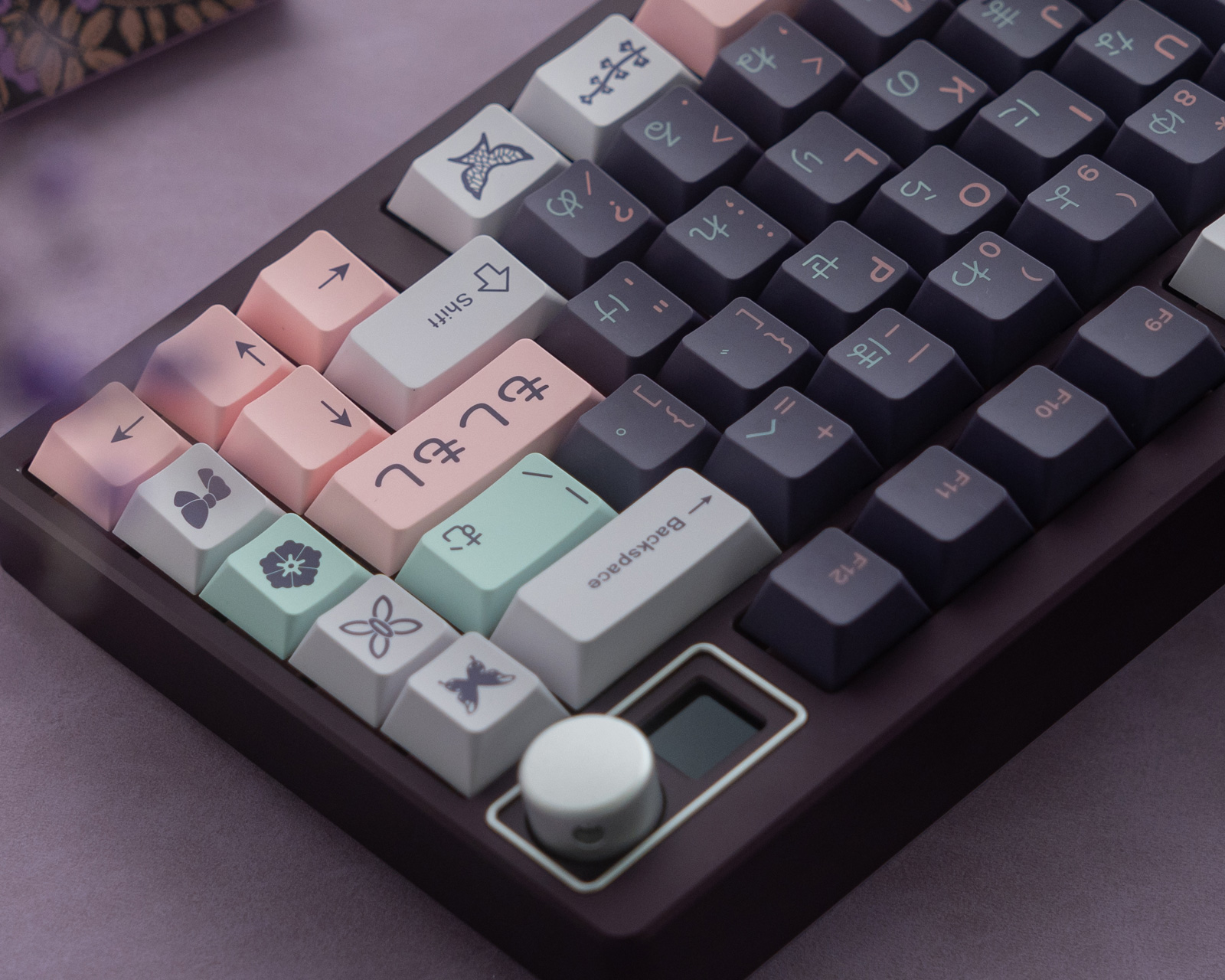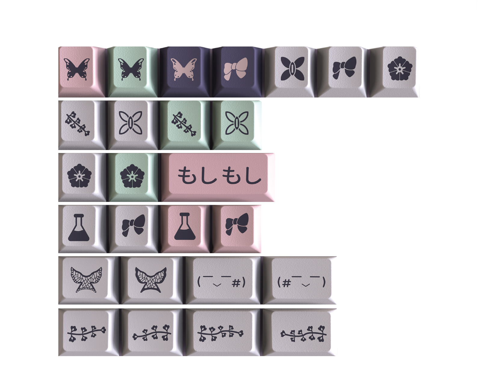 Hergestellt aus hochwertigem PBT mit einer Dicke von 1,6 mm und Cherry-Profilen bietet das Butterfly Girl sowohl Langlebigkeit als auch Komfort. Der Siebdruck stellt sicher, dass jedes Detail scharf und langlebig ist. Erleben Sie eine harmonische Balance zwischen Funktionalität und Ästhetik für sowohl Arbeit als auch Freizeit.