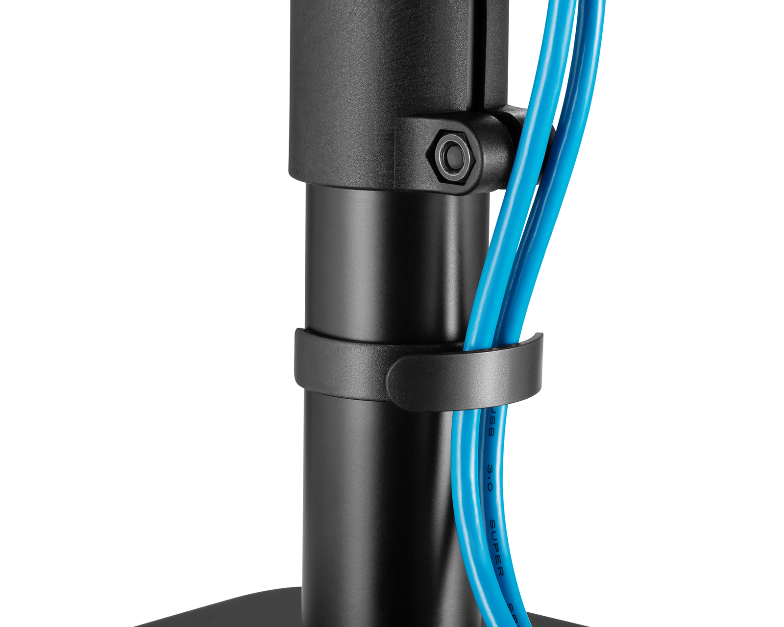 Dank des integrierten Kabelsystems und des vibrationsreduzierenden Designs mit oberer Silikonplatte entsteht eine aufgeräumte Umgebung. Die aufsteckbare Basis hilft außerdem dabei, mehr wertvollen Platz auf dem Schreibtisch zurückzugewinnen und ihn für andere Zwecke freizugeben.