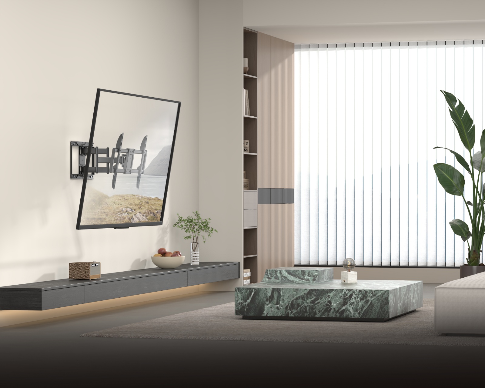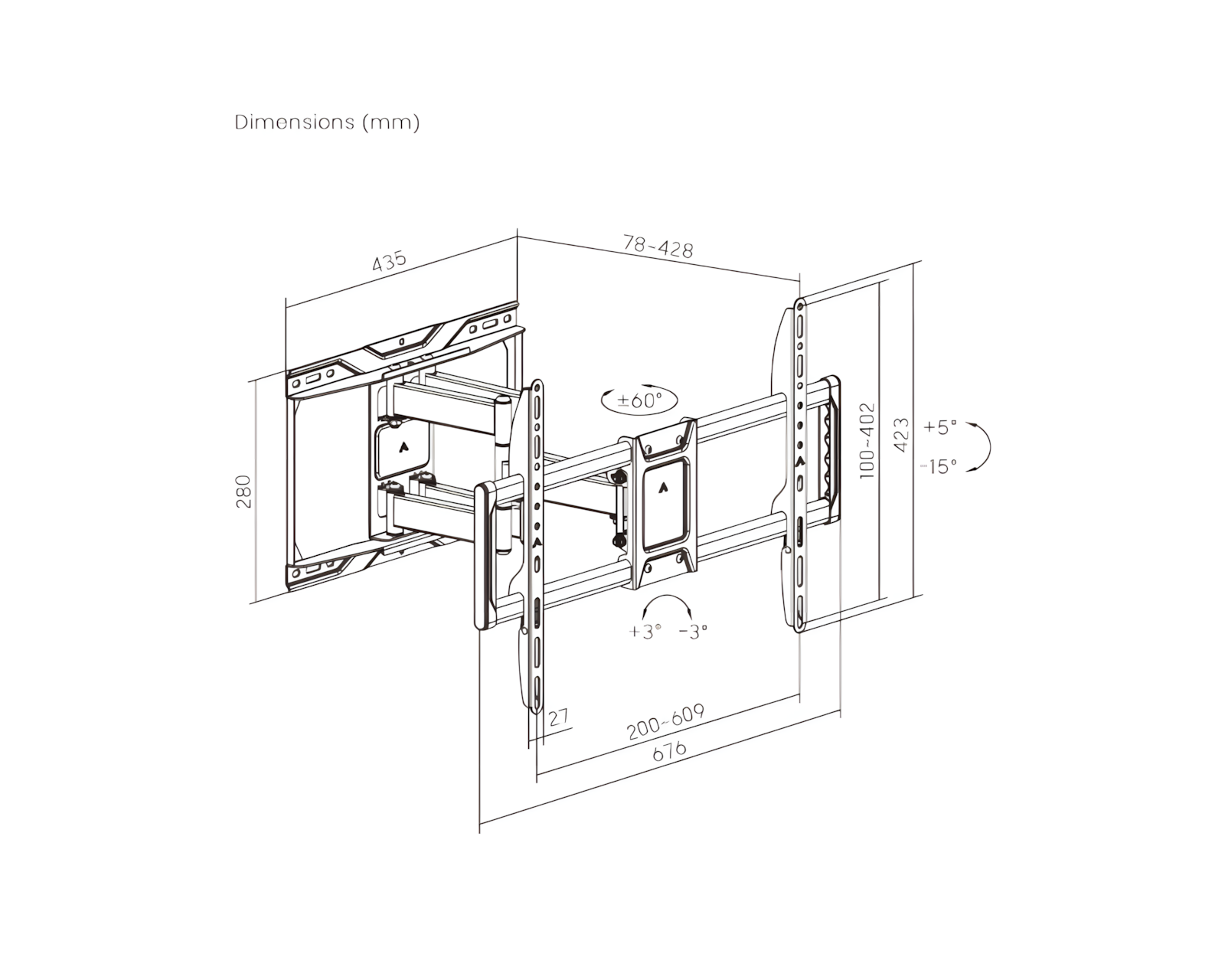 Die Wandhalterung besteht aus Stahl und Kunststoff und hat einen maximalen Neigungswinkel von +60° bis -60°, wodurch der Benutzer die Möglichkeit hat, den Winkel für die bestmögliche Bilddarstellung anzupassen. Die eingebaute Kabelmanagement sorgt für eine saubere und organisierte Installation, während die verfügbaren Nivellierungsanpassungen Feinjustierungen nach der Installation ermöglichen. Mit einem schwenkbaren Design können Sie den Fernseher einfach auf verschiedene Betrachtungswinkel anpassen und sowohl Funktion als auch Komfort optimieren.