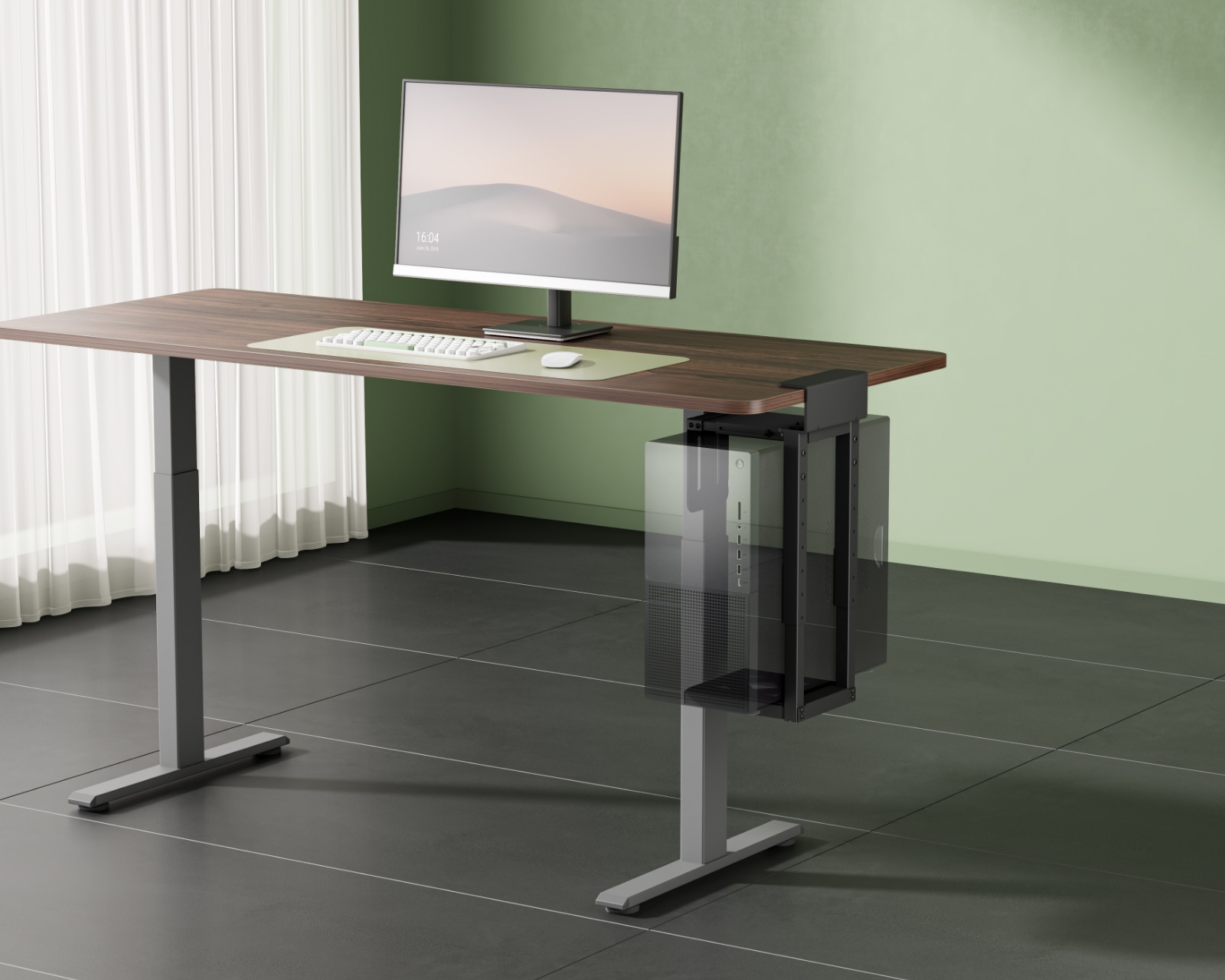 Die Konstruktion des Computerhalters umfasst ein stabiles Stahlrahmendesign und Kunststoffkomponenten, die zusammen gewährleisten, dass er Gewichte von bis zu 30 kg unterstützen kann. Mit einer werkzeuglosen Klemmbefestigung wird der Halter einfach am Schreibtisch befestigt, ohne die Oberfläche zu beschädigen. Die verstellbare Struktur ermöglicht eine Anpassung an verschiedene Größen von Computergehäusen, während schützende Pads dazu beitragen, Kratzer zu verhindern und zusätzliche Stabilität bieten. Der Computerhalter ist außerdem so konzipiert, dass er größere CPUs mit einer starken Balance und Unterstützung bewältigen kann.