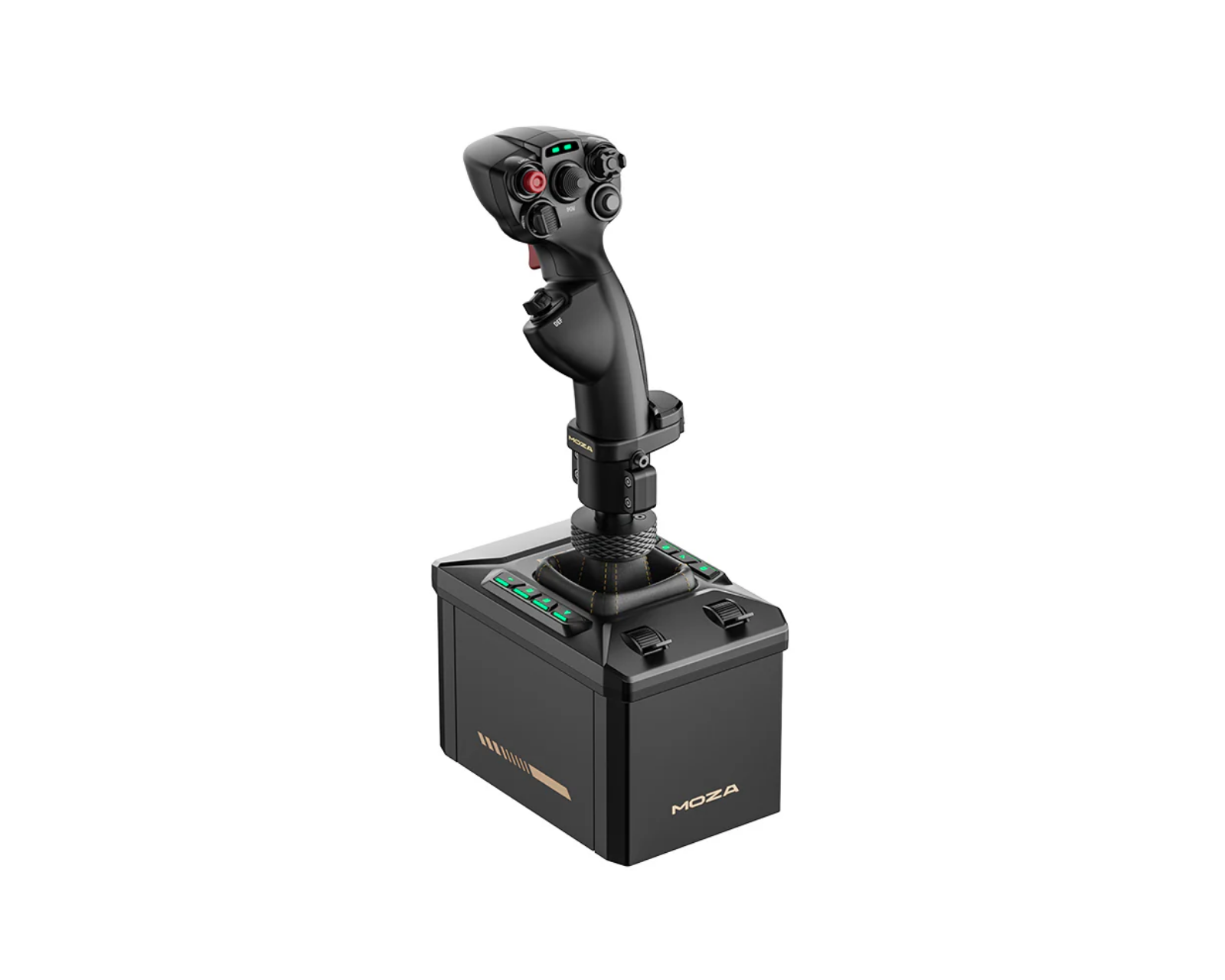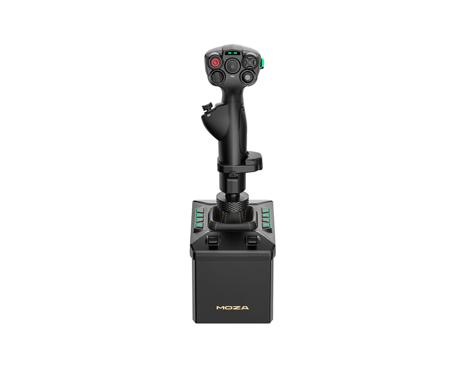 Die Basis des AB6 besteht aus Aluminiumlegierung und hochwertigem Stahl, was eine robuste und langlebige Konstruktion gewährleistet. Sie ist mit einem 15-Bit-magnetischen Encoder für hochpräzise Nachverfolgung ausgestattet und hat ein kompaktes Design, das eine flexible Installation in verschiedenen Setups ermöglicht. Das programmierbare Frontpanel enthält acht Tasten mit anpassbarer RGB-Beleuchtung sowie zwei analoge Schieberegler für die Einstellungen von Gas, Luftbremse und Kamera. Der MHG Flugspak hat eine Konstruktion aus kohlenstofffaserverstärktem Verbundmaterial, mit ergonomischem Design und umfangreicher Tastenanordnung für über 25 virtuelle Eingänge.