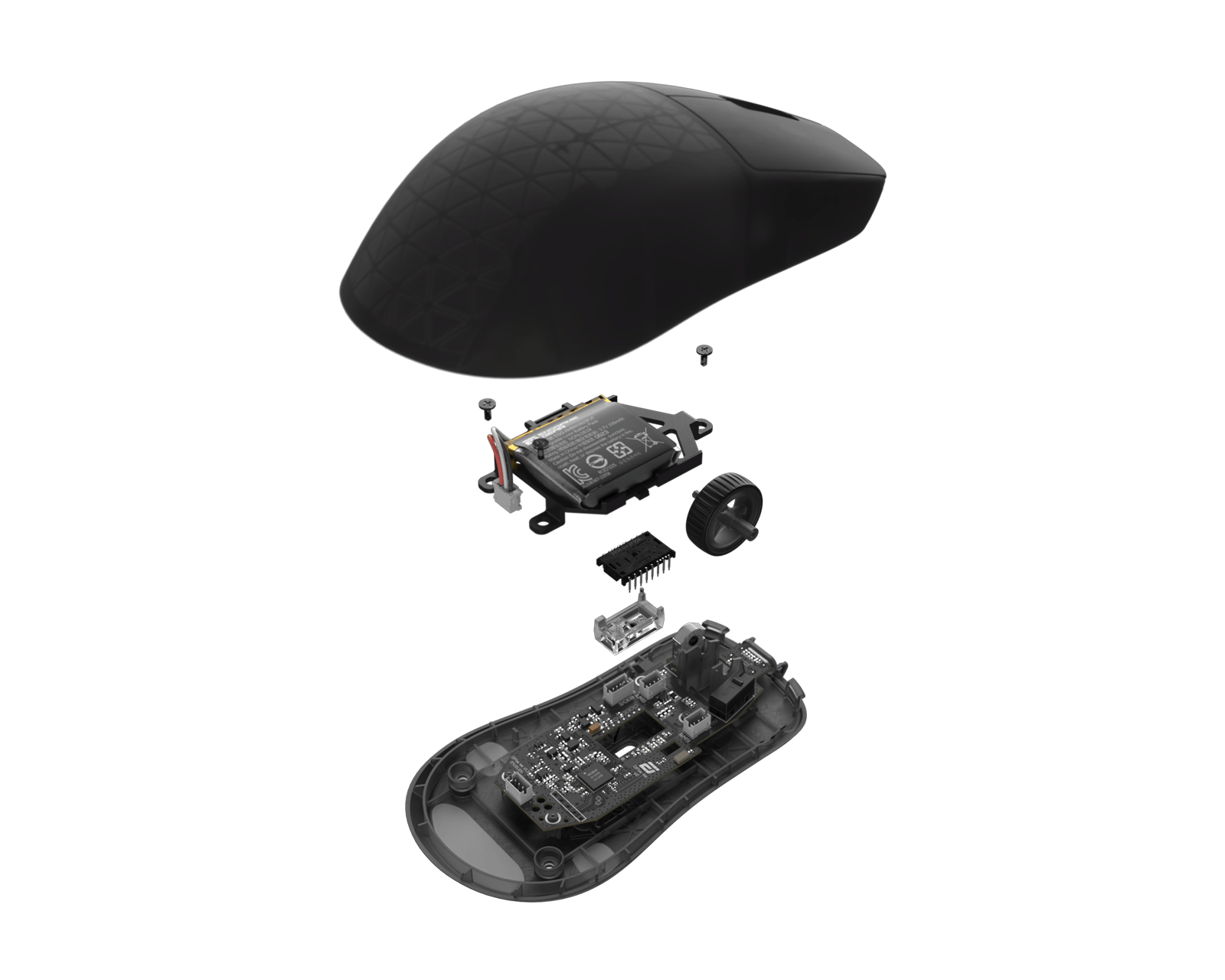 Mit dem PixArt PAW3950-Sensor können Benutzer den CPI in 10-Schritten anpassen und aus 11 LoD-Einstellungen von 0,7 bis 1,7 mm wählen, um die Empfindlichkeit der Maus an ihre Bedürfnisse anzupassen. Die Maus wiegt etwa 58,5 Gramm und lässt sich so auch bei intensiven Gaming-Sessions leicht manövrieren.