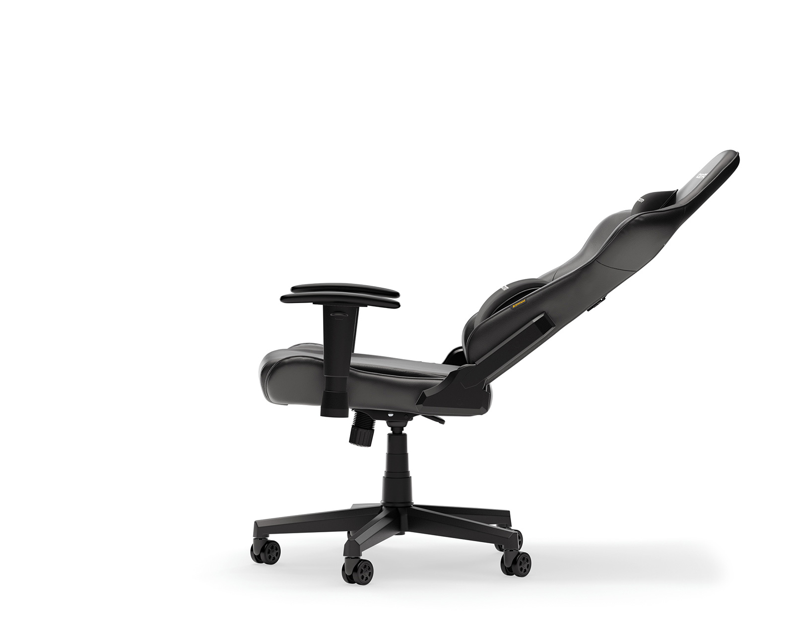 Über die herkömmliche Bedieneinheit können Sie den Sitz entweder entriegeln, um ihn nach vorne und hinten zu neigen, oder in der aufrechten Position arretieren. Die höhenverstellbaren 1D-Armlehnen und die mitgelieferten Kopfstützen- und Lendenkissen ermöglichen es Ihnen, genau die gewünschte Position zu finden.