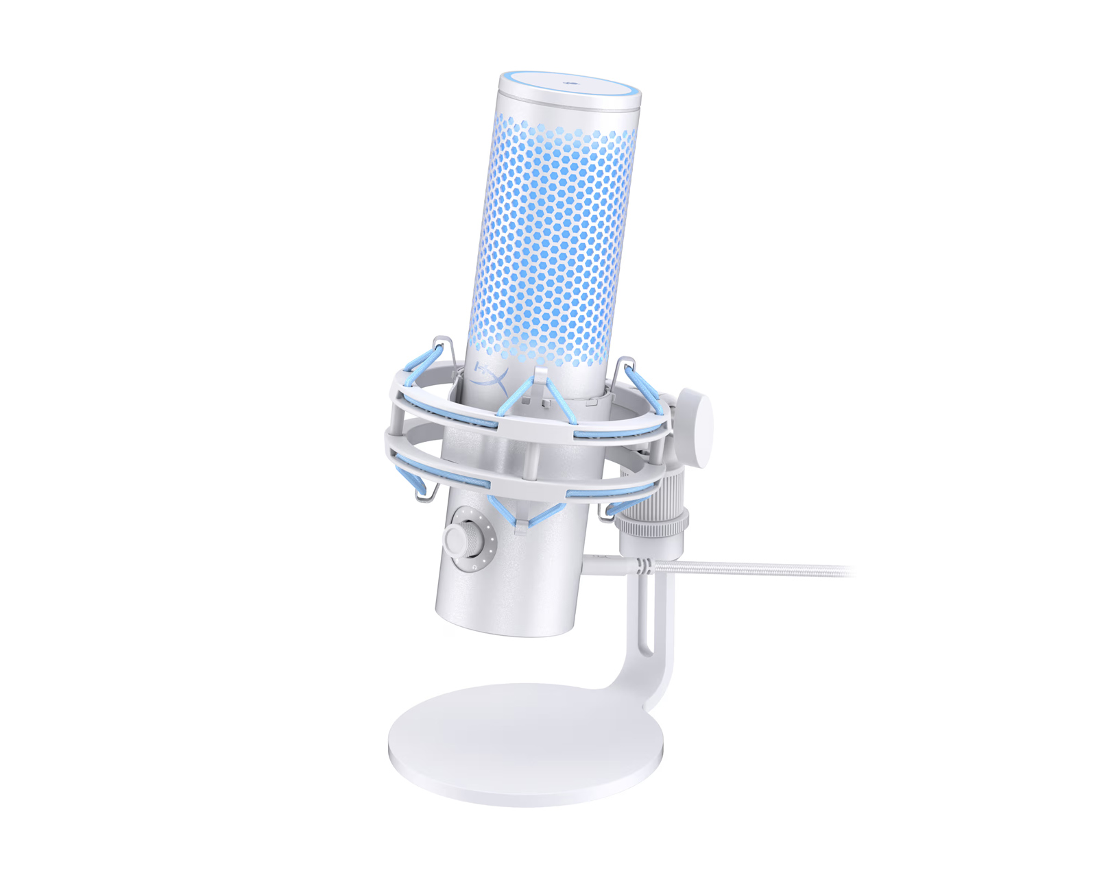 DEMO: Nachkauf- und Testexemplar. Guter Zustand.Verbessere dein Audioerlebnis mit dem HyperX QuadCast 2 Frost, dem perfekten Mikrofon für Gamer, Streamer und Content-Ersteller, die Wert auf unschlagbare Audioqualität legen. Mit beeindruckender 24-Bit-Audiounterstützung und 96-kHz-Aufnahmefunktion liefert dieses Mikrofon Audio in Studioqualität, sodass du jede Nuance deiner Stimme einfängst. Ob beim Gaming, Podcasting oder Live-Streaming ? das QuadCast 2 sorgt dafür, dass deine Botschaft laut und deutlich zu hören ist. Das elegante weiße Aluminium-Finish verleiht deinem Setup nicht nur eine elegante Optik, sondern sorgt auch für Langlebigkeit.