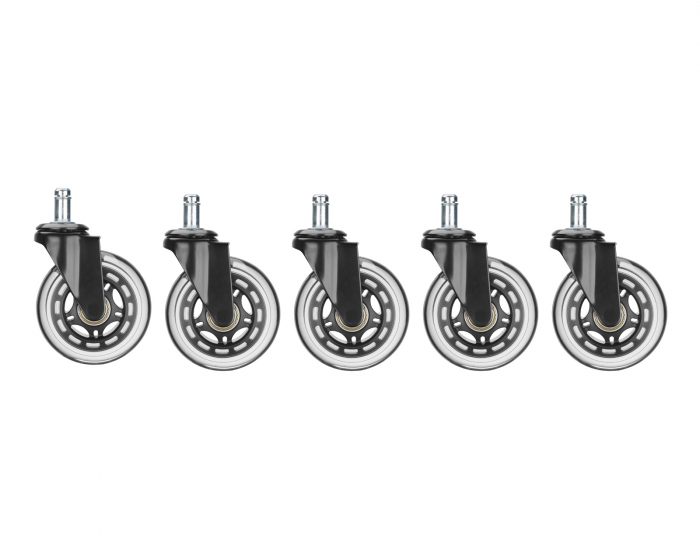 DEMO: Nachkauf und Testexemplare. Guter Zustand.Jetzt können Sie Ihre aktuellen Stuhlräder einfach und problemlos durch diese Rollen für Büro- und Gaming-Stühle ersetzen, die leichtgängig sind und einfach am Stuhl montiert werden können. Durch den universellen Befestigungsstift passen Stuhlräder für die allermeisten Modelle. Die Räder bestehen aus robustem Stahl und Gummi, was zu einer langen Haltbarkeit beiträgt. Fühlen Sie sich sowohl auf Holzböden als auch auf Teppichen sicher, die Stuhlrollen sorgen für eine leise Bewegung und guten Halt. Der Durchmesser von 3 Zoll (7,62 cm) trägt zu erhöhter Stabilität bei. Im Paket sind 5 Stuhlrollen enthalten.