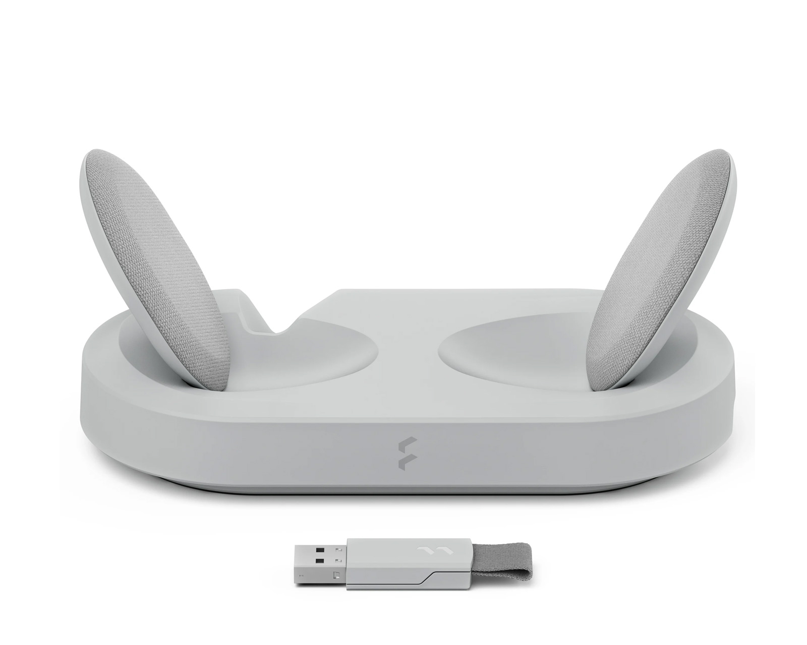 Scape ist mit zwei Wireless-Optionen ausgestattet: 2,4 GHz für geringe Latenz und Bluetooth 5.3 für maximale Flexibilität. Über die mitgelieferte webbasierte Benutzeroberfläche können Sie Einstellungen wie Equalizer und RGB ganz einfach anpassen, um Klang und Aussehen an Ihre Vorlieben anzupassen. Sie können bis zu drei Profile speichern und mit einem einfachen Tastendruck zwischen ihnen wechseln. Mit den beiden integrierten Mikrofonen für den alltäglichen Gebrauch und einem abnehmbaren Bügelmikrofon wird unabhängig von der Anwendung erstklassiger Klang geliefert. Eines der Highlights ist der mitgelieferte Ladeständer, der eine kabellose Ladelösung bietet und das Gerät ebenso praktisch wie stilvoll macht. Der USB-Dongle ist diskret im Sockel des Ständers verstaut und leicht zugänglich. Die Kombination aus Funktionalität, Design und erweiterten Funktionen macht Scape zu einem kabellosen Headset, das wirklich hervorsticht.