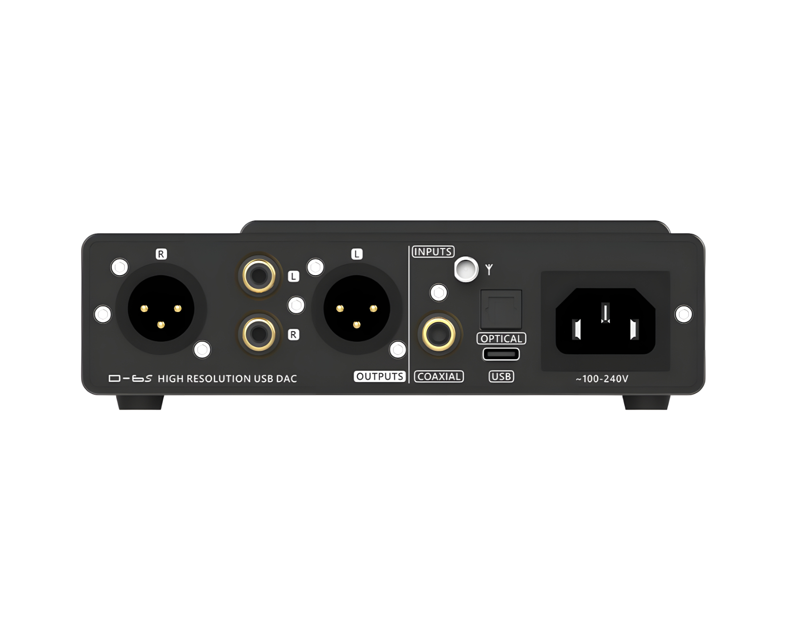 Das Gerät ist mit dem neuesten Qualcomm Bluetooth-Chip ausgestattet, der LDAC 24bit/96kHz, APTX/HD, SBC und AAC für die drahtlose Übertragung unterstützt. Der D6S nutzt außerdem vier hochleistungsfähige doppelte Operationsverstärker OPA1612 sowie eine Vielzahl hochwertiger Audiokomponenten. Der XMOS XU-316 der dritten Generation unterstützt PCM 32bit/768kHz und DSD512, was große Flexibilität für verschiedene Audioformate bietet. Die Audio-Taktverarbeitungsschaltung reduziert Jitter, was die Audioqualität weiter verbessert. Die Eingangsports (außer Bluetooth) unterstützen MQA und DSD, während koaxiale und optische Anschlüsse DoP64 unterstützen.