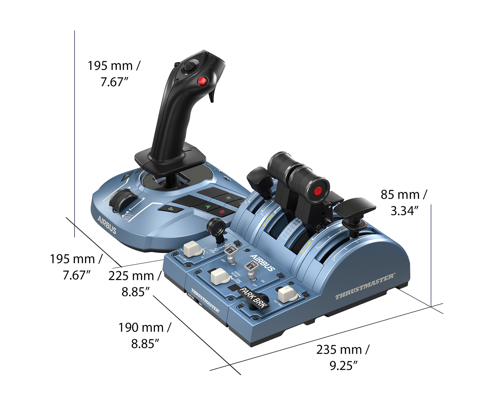 In diesem Flugpaket erhalten Sie sowohl einen TCA Sidestick X als auch einen TCA Quadrant, beide in der Airbus Edition. Mit dem Flug-Joystick und dem Schubregler kommen Sie dem Fliegen eines echten Airbus so nah wie möglich. Spielen Sie Ihre Lieblings-Flugsimulatorspiele auf Ihrer Xbox Series-Konsole oder Ihrem PC. Begeben Sie sich noch heute auf einen außergewöhnlichen Flug!