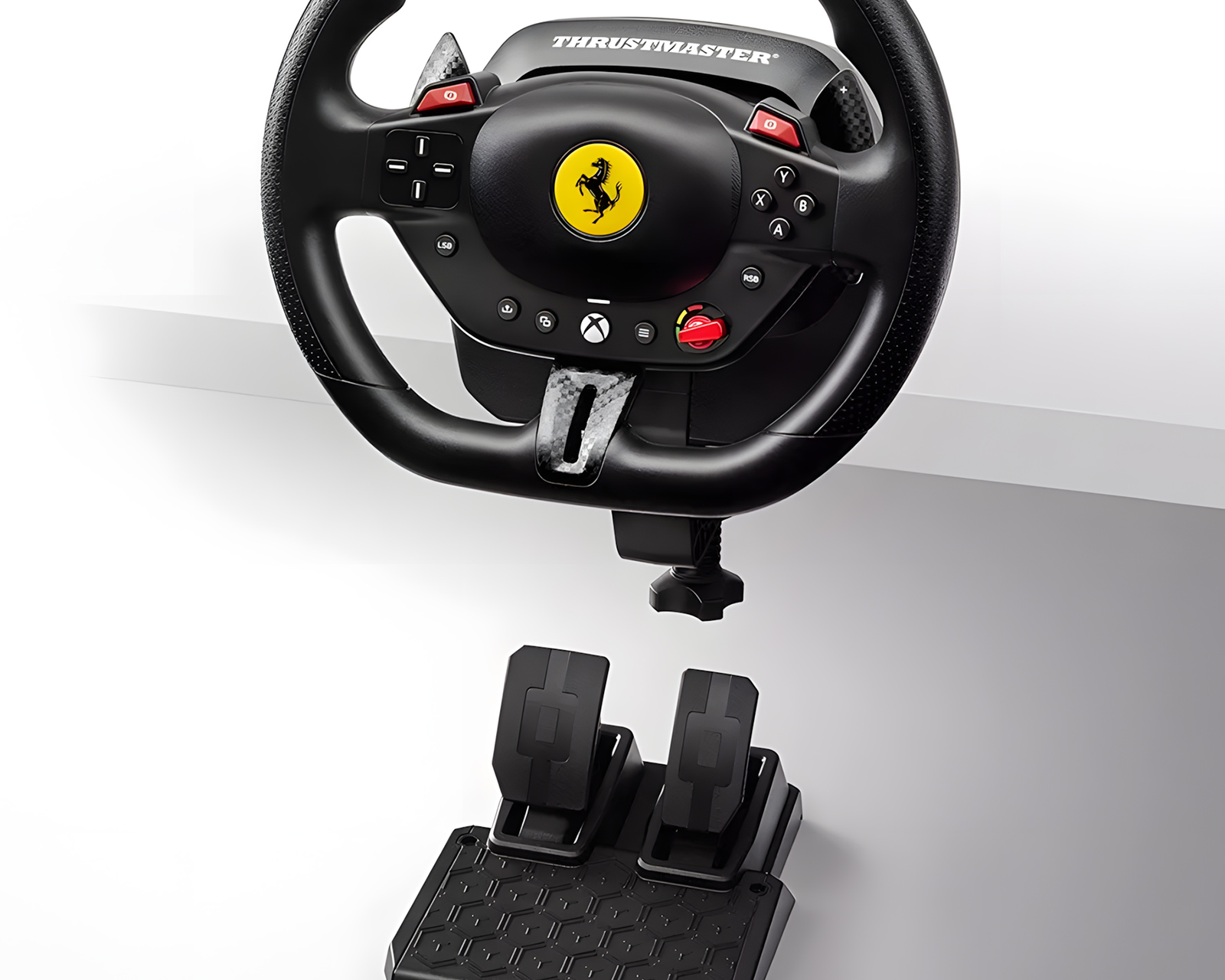 Der T98 Ferrari 296 GTS hat einen Durchmesser von 10 Zoll (25,5 cm) mit einer Nachbildung von Carbon und hochleistungsfähigen Schaltwippen, was zu einem realistischen Fahrerlebnis beiträgt. Die Bungee-Cord-Technologie ermöglicht es dem Lenkrad, automatisch in eine zentrierte Position zurückzukehren und bietet einen linearen Widerstand für ein authentisches Gefühl. Es hat auch alle Tasten, die auf einem standardmäßigen Spielcontroller vorhanden sind, was volle Kontrolle in den Spielen bietet. Das Produkt ist einfach ohne Werkzeuge zu installieren, dank seiner Tischklemme, und hat ein kompaktes Design für einfache Aufbewahrung.