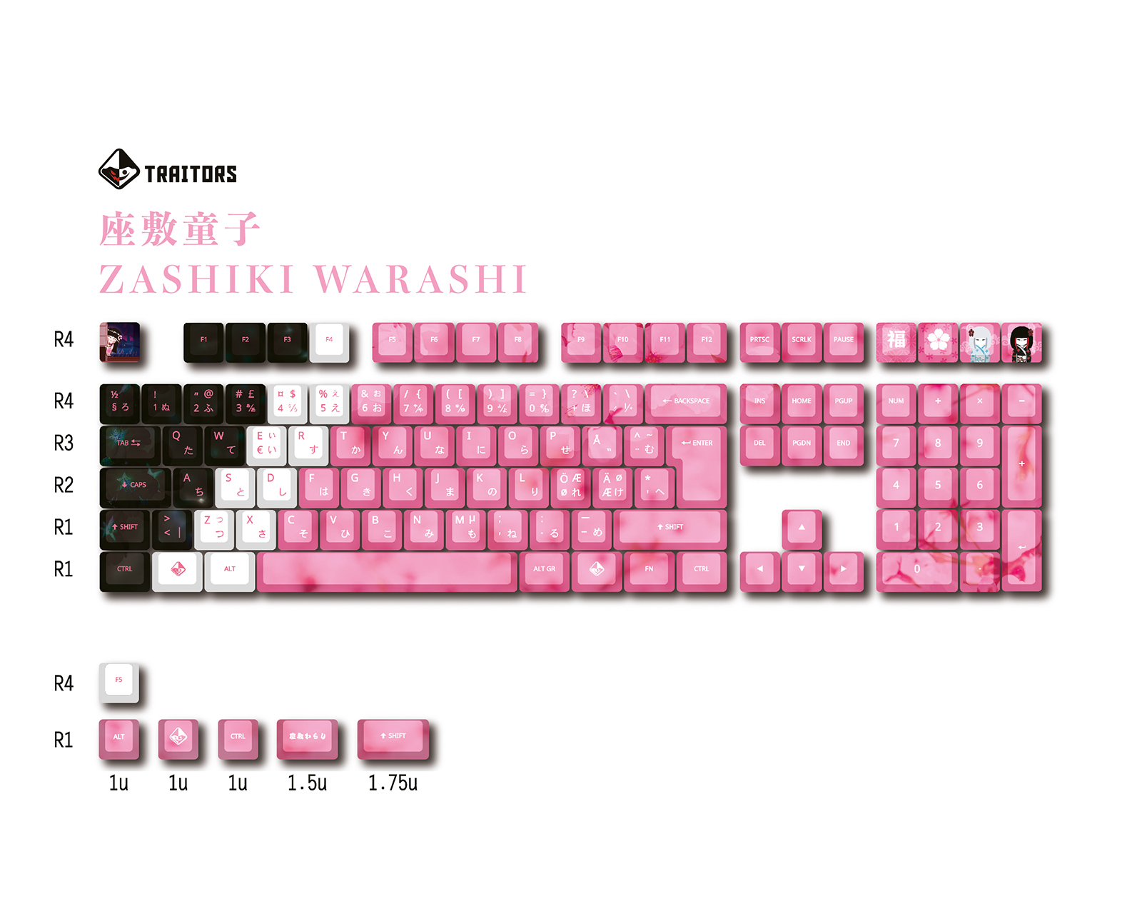 Traitorkeys Zashiki Warashi 116 Keys Keycap set PBT (DEMO)