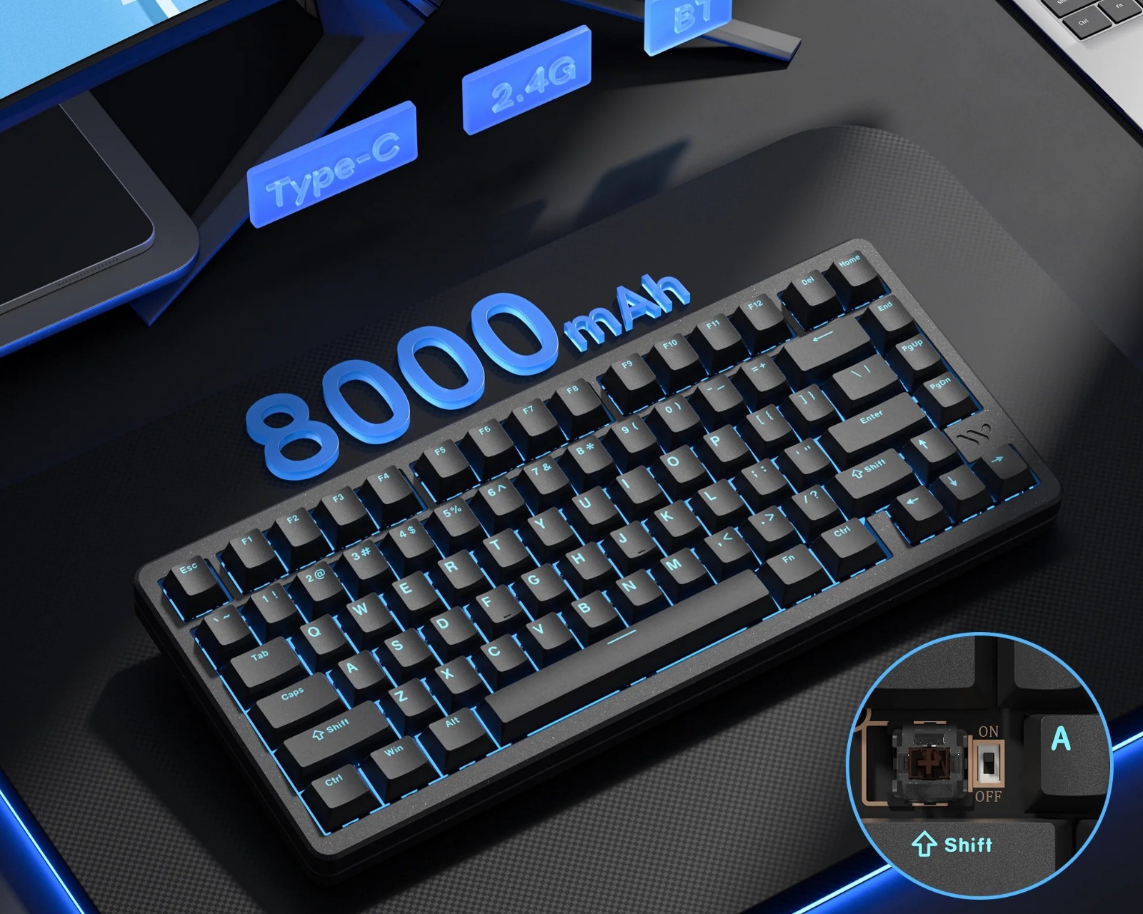 Die Verarbeitungsqualität des SK75 TMR ist robust mit einem Aluminiumchassis und einer FR4-Platine, die sowohl magnetische als auch traditionelle mechanische Schalter unterstützt, was die Hot-Swap-Funktionalität ermöglicht. Die Tastatur ist zudem mit einem einstellbaren Betätigungspunkt zwischen 0,1mm und 3,5mm ausgestattet und hat eine Latenz von 0,125 ms im kabelgebundenen Modus. Die Tastatur unterstützt USB Type-C-Anschluss, Bluetooth 5.0 und 2,4 GHz kabellos. Die Hintergrund-LEDs sind unter den Tasten platziert, was eine gleichmäßige und ansprechende Beleuchtung bietet.