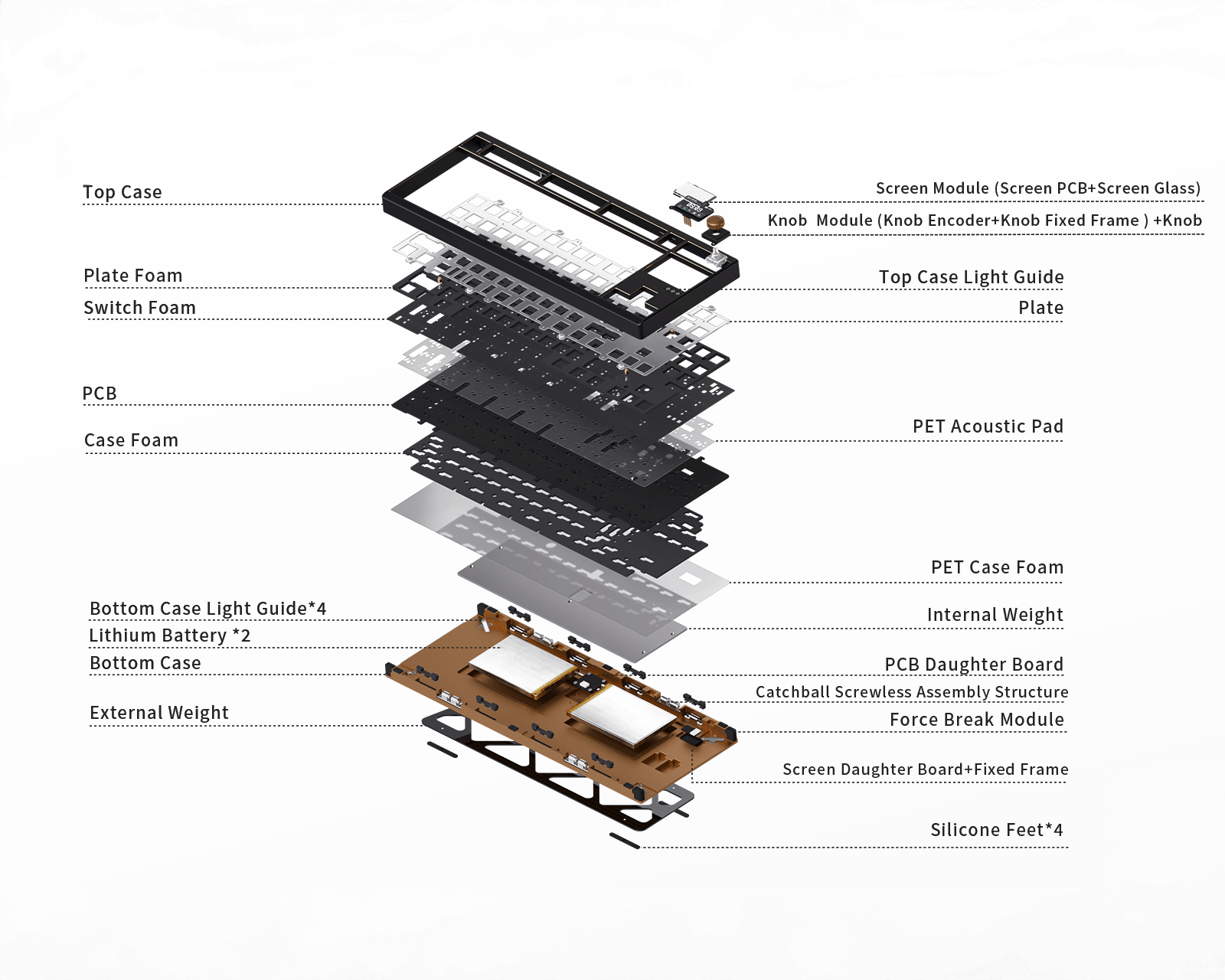 ZOOM TKL DYNA ist ein Barebones-Kit von Wuque Studio, das eine vielseitige Benutzererfahrung bietet. Das modulare Design ermöglicht Anpassungen von Bildschirm und Steuerelementen, was den Benutzern die Freiheit gibt, ihre Einstellungen zu personalisieren. Das Gerät verfügt über ein Gehäuse aus 6063-Aluminium und ein schraubenfreies Kugelsystem für einen einfachen Wechsel zwischen verschiedenen Montageoptionen. Es unterstützt sowohl kabelgebundene Verbindungen über USB-C als auch drahtlose Verbindungen über Bluetooth 5.4 und 2.4 GHz.