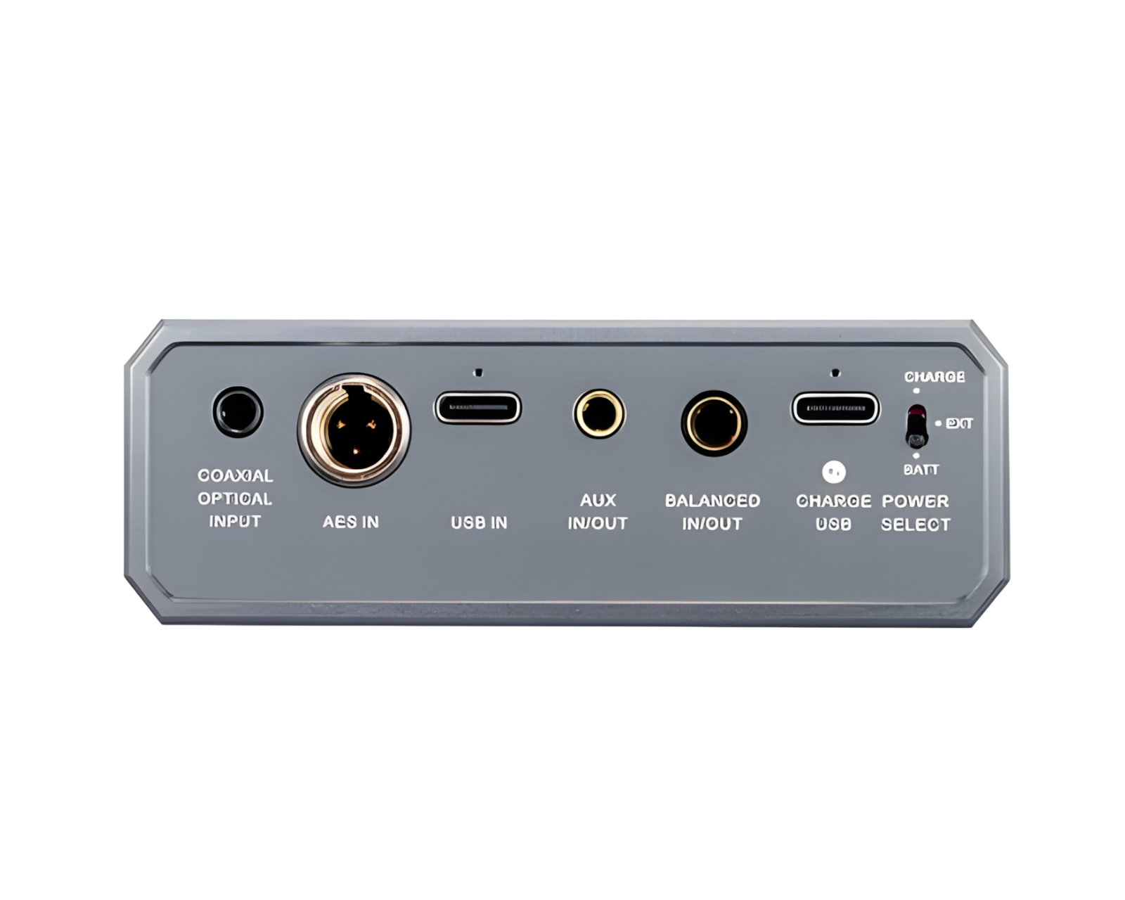 USB-C (Data & Laddning), Digital (Coaxial/Optisk/AES via 3.5mm/Mini-XLR), Analog AUX In (3.5mm & 4.4mm). | |