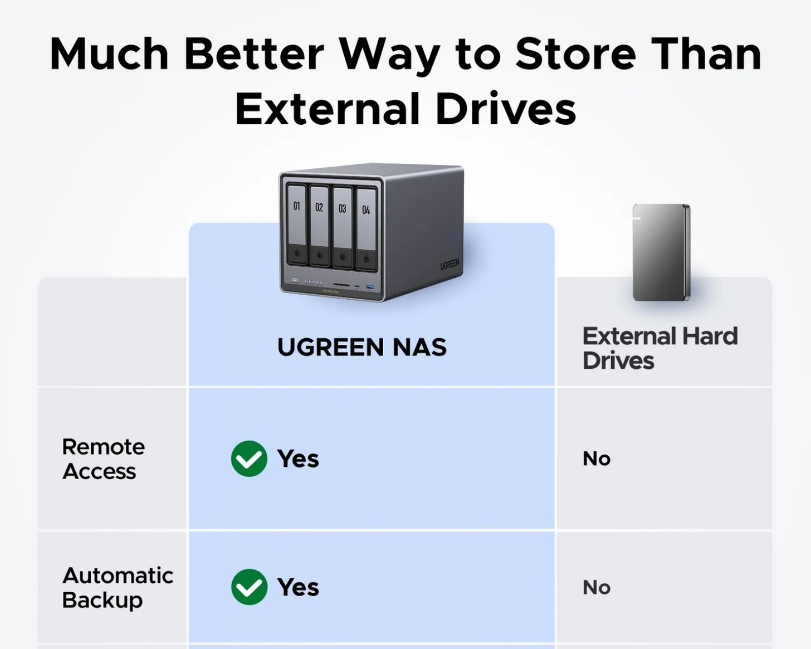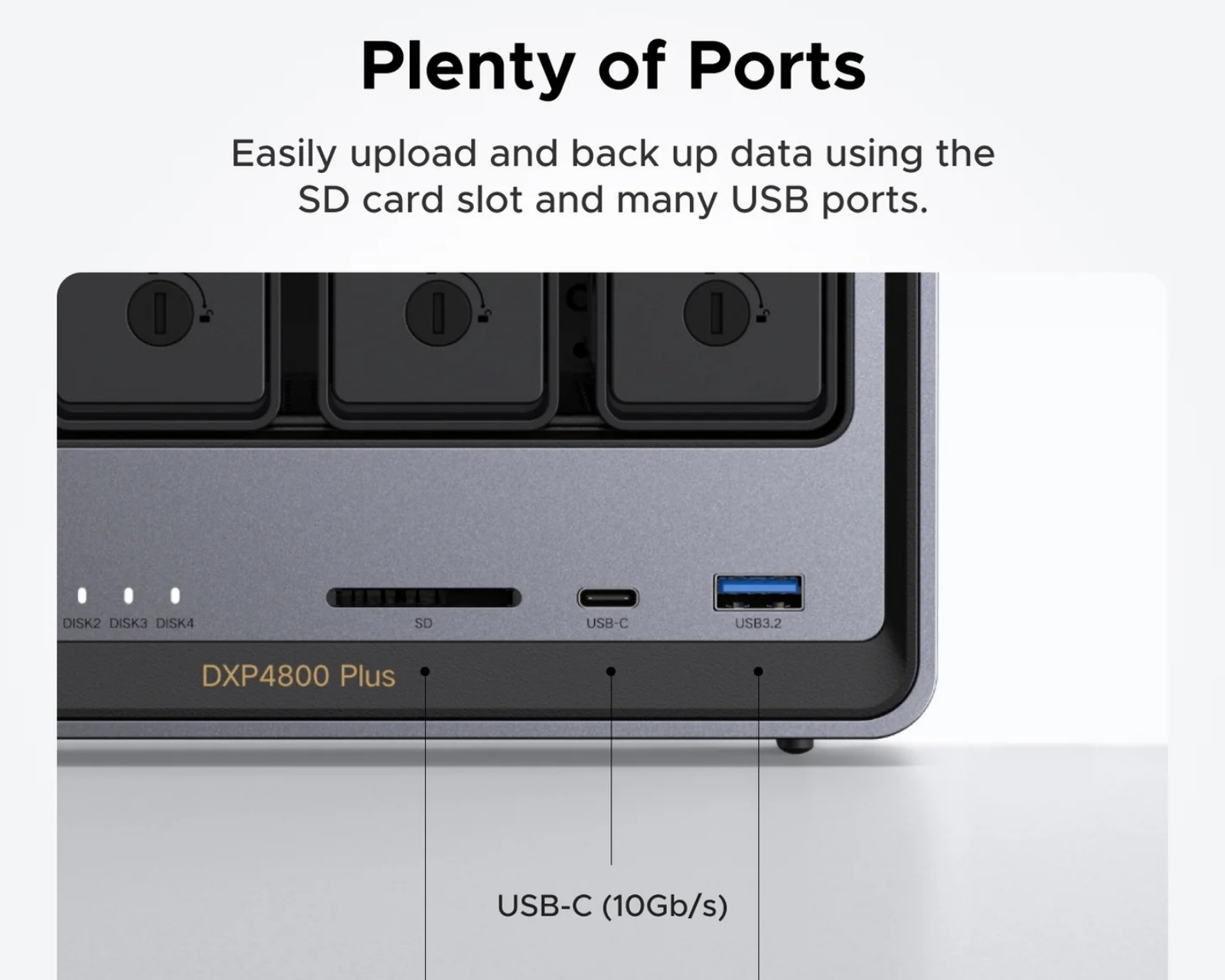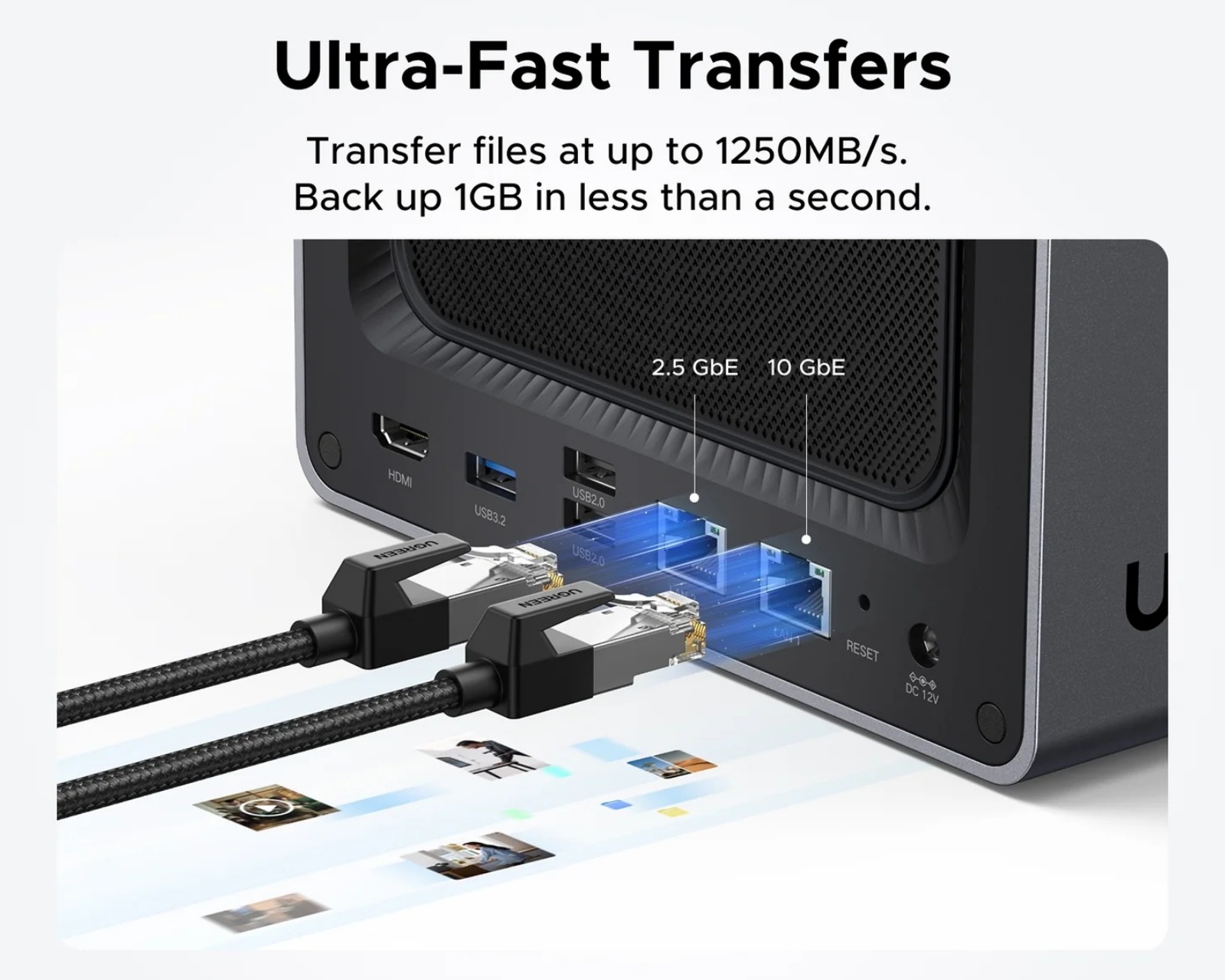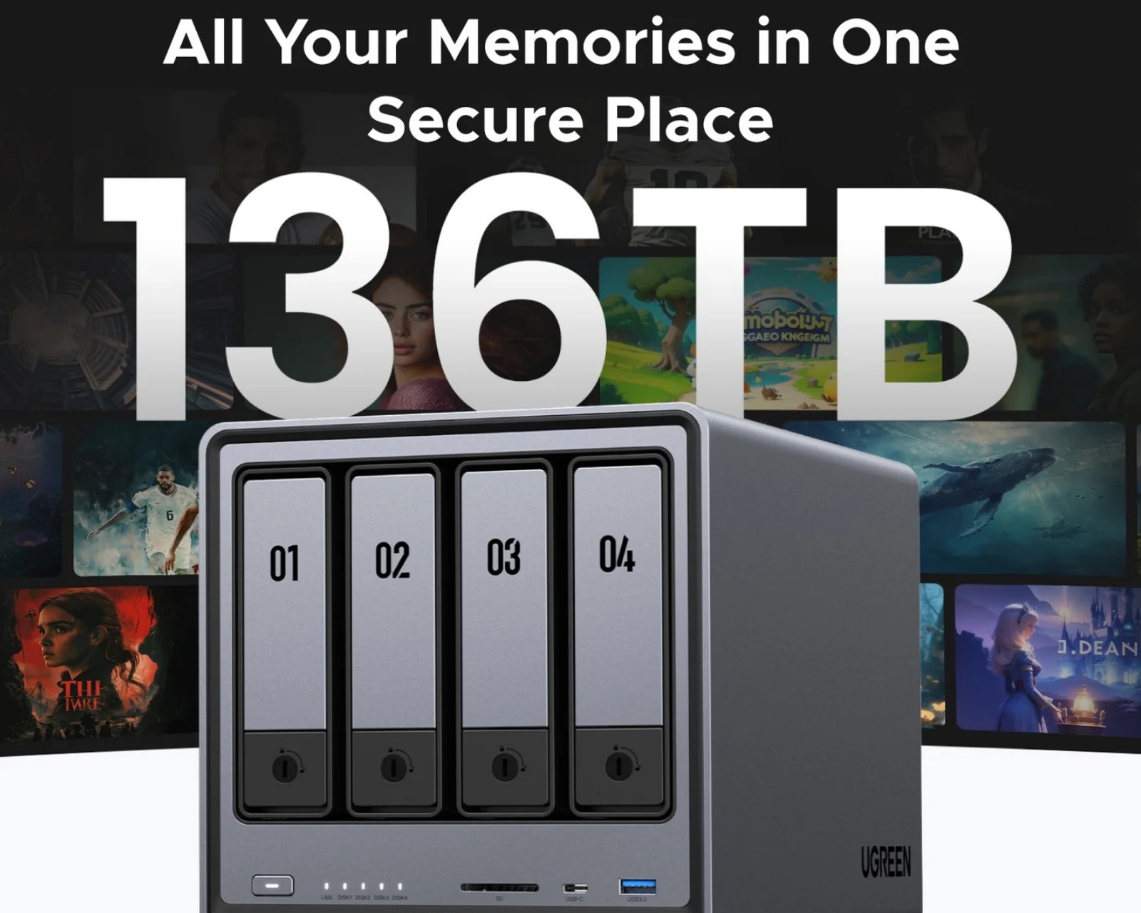 UGREEN NASync DXP4800 Plus ist ein 4-Bay-NAS-Gerät von UGREEN, das Speicherkapazität mit fortschrittlichen Funktionen für Fernzugriff und Backup kombiniert. Mit einem Intel Pentium Gold 8505 5-Core-Prozessor und Unterstützung für 136 TB Speicher ist es sowohl für den Heim- als auch für den Kleinunternehmensgebrauch geeignet. Das Gerät bietet Geschwindigkeiten von bis zu 10GbE für die Datenübertragung und verfügt über einen HDMI-Ausgang für 4K-Video.UGREEN NASync DXP4800 Plus wurde mit Fokus auf Effizienz und Leistung gebaut. Es ist mit 8 GB DDR5 RAM ausgestattet, der auf bis zu 64 GB erweitert werden kann, was reibungsloses Multitasking ermöglicht. Es besitzt zwei M.2 NVMe-Steckplätze für hohe Lese- und Schreibgeschwindigkeiten, was die Gesamtleistung weiter optimiert. Das Gerät ermöglicht zentralisierten Speicher und automatische Backups und bietet gleichzeitig benutzerfreundlichen Dateizugriff über mehrere Plattformen.