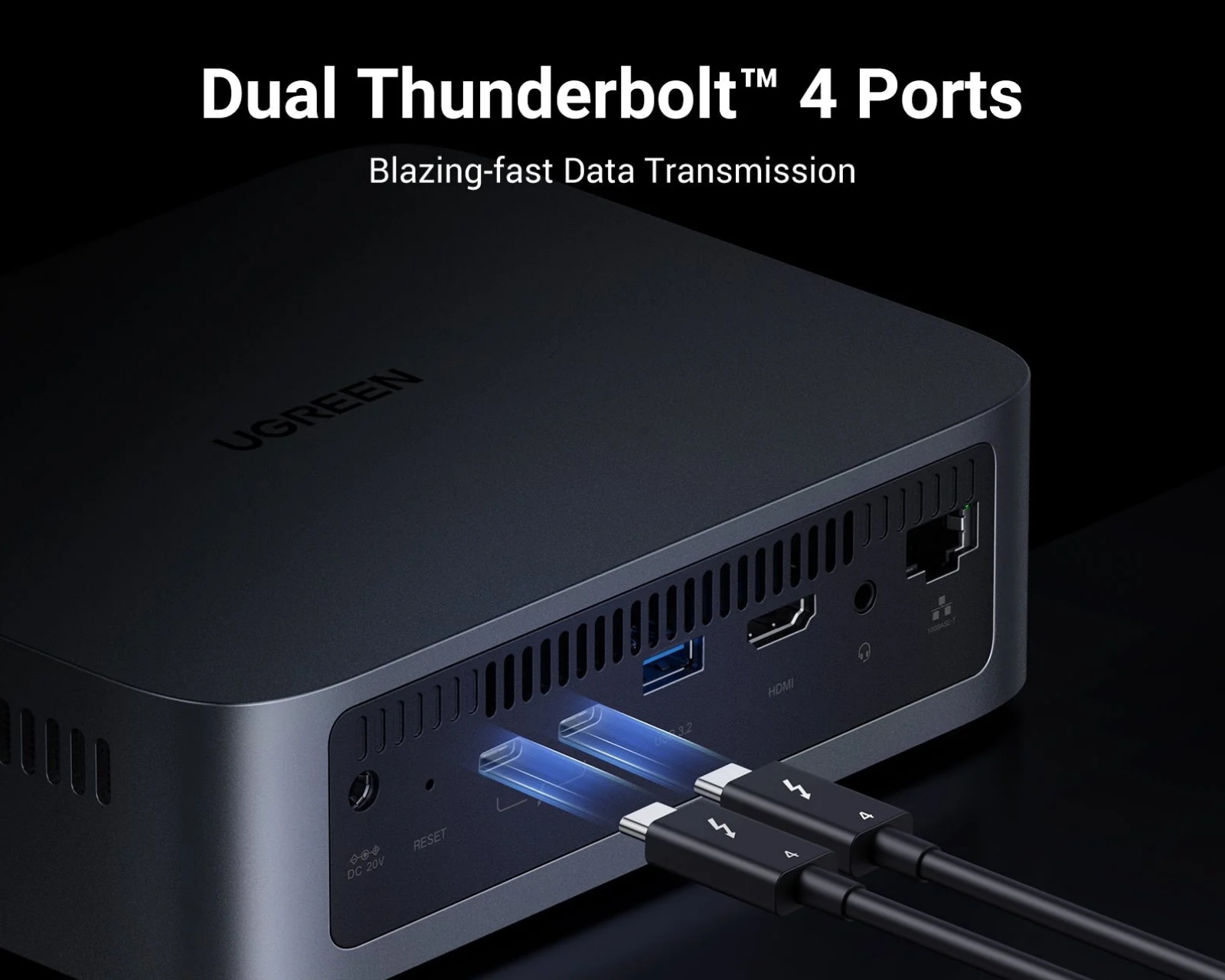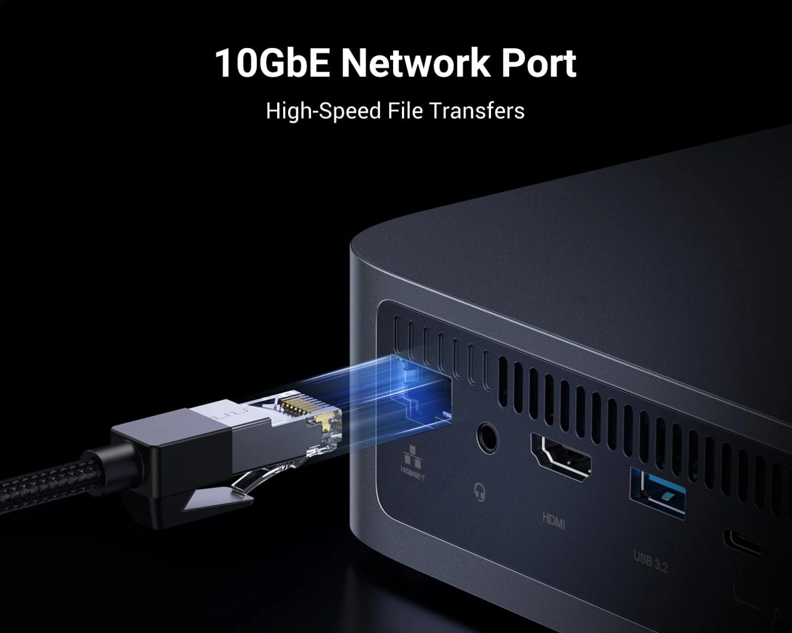 NASync DXP480T Plus ist ein leistungsstarker NAS von UGREEN, ausgestattet mit einem 12. Generation Intel®-Prozessor mit 10 Kernen. Die integrierte App erleichtert den Zugriff auf alle Funktionen und macht die Dateiverwaltung einfacher. Mit einer Kapazität von bis zu 32 TB Speicher über M.2 NVMe ist sie besonders geeignet für Kreative, die hohe Geschwindigkeit und sichere Dateiübertragungen benötigen.Das Gerät bietet vier M.2-Festplattenschächte mit einer maximalen Kapazität von 8 TB pro Laufwerk, was Flexibilität bei der Speicherlösung bietet. Der Prozessor, Intel 1235U, hat eine Taktfrequenz von 3,3 GHz mit der Möglichkeit zur Turbo-Übertaktung von bis zu 4,4 GHz und ist zudem mit 8 GB RAM ausgestattet, mit der Möglichkeit, auf 64 GB aufzurüsten. Die NAS-Einheit bietet auch Echtzeitschutz der Daten mit Verschlüsselung und Multifaktor-Authentifizierung, was sie zu einer sichereren Alternative zur herkömmlichen Cloud-Speicherung macht. Für die Verbindung gibt es USB 3.1/3.2 Gen 2, zwei Thunderbolt 4-Ports und einen LAN 10 GbE.