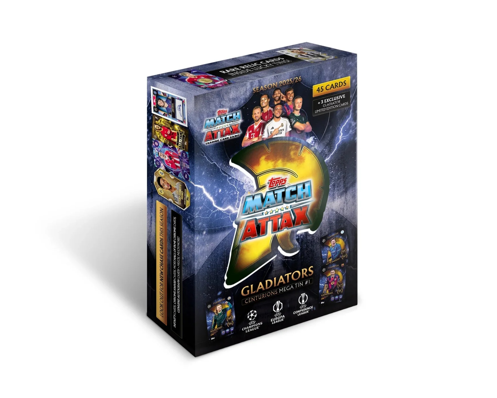 Match Attax Mega Tin UCL 25/26 ist eine Sammlung von Fußballkarten von Topps, die 45 Karten aus der UEFA Champions League, UEFA Europa League und UEFA Europa Conference League enthält. Diese Kollektion bietet 524 neue Karten, mit Kategorien wie Leaders, Cup Champions, Showboats, Magic Memories, Stealth Strike und Counter Attack, sowie wiederkehrenden Elementen wie Heritage und Team Badges. Das Produkt wird zufällig bei der Bestellung ausgewählt.Sie ist von robuster Qualität und bietet eine abwechslungsreiche Auswahl an Karten, einschließlich seltener Varianten wie Black Edge, Infinity-Karten und Platinum Pull-Karten. In der Kollektion befinden sich auch einzigartige Hall of Fame Chrome-Karten und Black Gold LE. Der Sammler kann zudem neue Karten entdecken, wie die spezielle Red Hot Yamal-Karte und die Ice Cole Palmer-Karten. Darüber hinaus umfasst das Sortiment Relikttkarten, die exklusiv für Booster und Mega Tins sind, sowie Autogrammkarten wie Lethal Combo Auto.