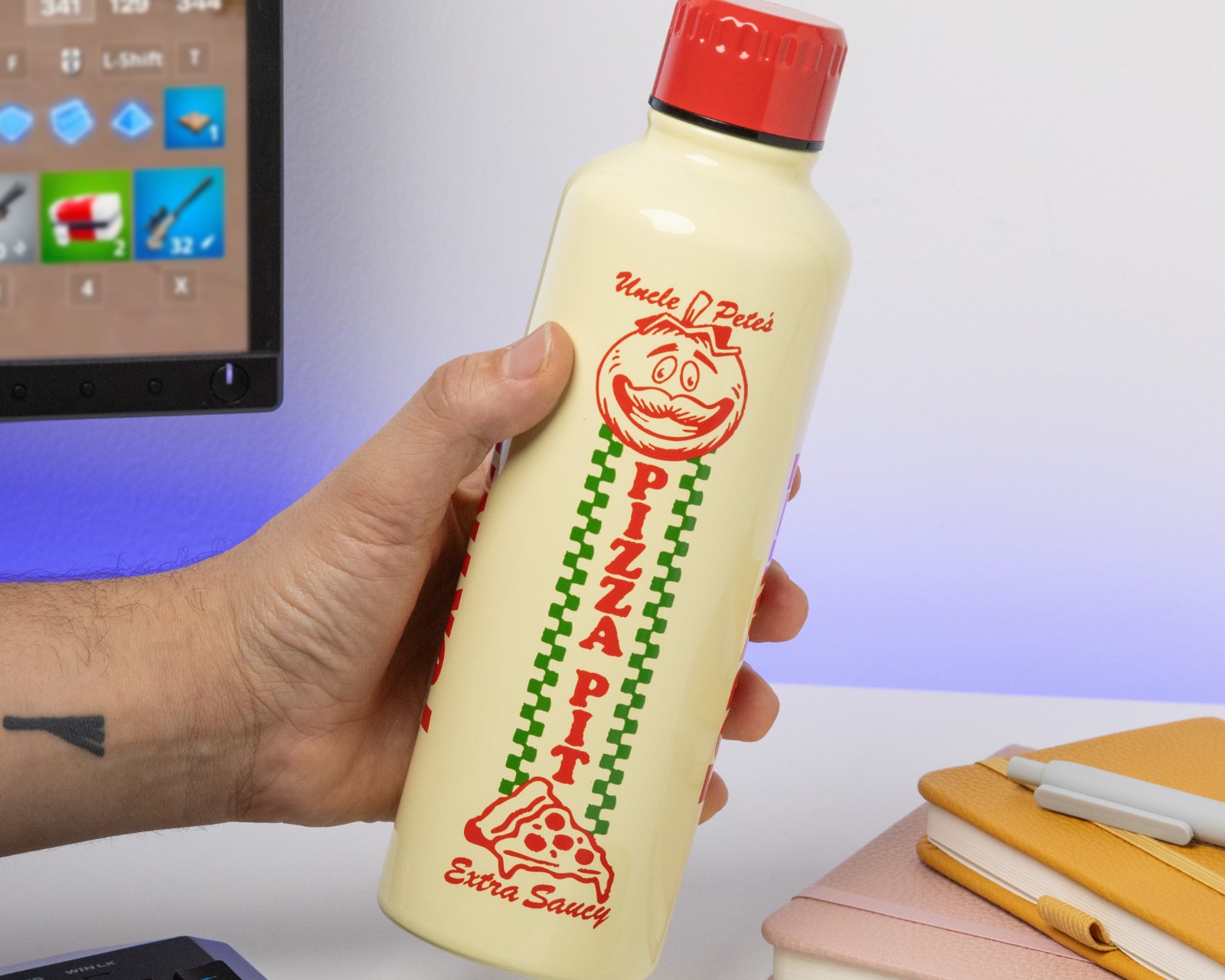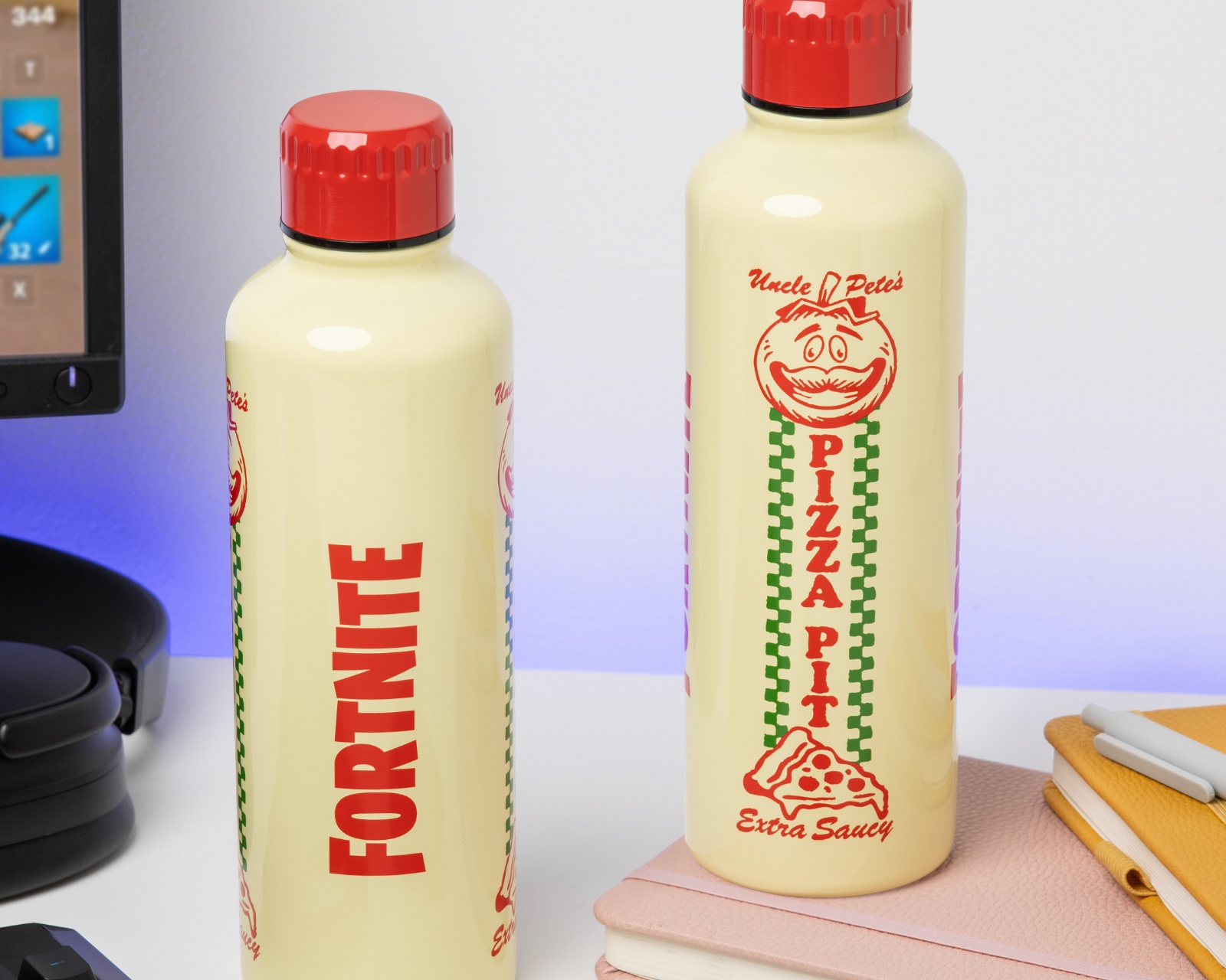 Die Fortnite Metall-Wasserflasche 500 ml ist eine funktionale Wasserflasche, die Getränke länger heiß oder kalt hält. Sie besteht aus Edelstahl und hat ein Fassungsvermögen von 500 ml. Sie ist eine praktische Wahl für Wanderer, Studenten oder Büroangestellte. Der Schraubverschluss sorgt dafür, dass die Flasche auslaufsicher und leicht zu handhaben ist. Die Flasche ist ein offiziell lizenziertes Produkt im Pizza Pit-Design und eignet sich perfekt für Fortnite-Fans.Die Flasche ist sowohl funktional als auch langlebig. Edelstahl ist das Material der Wahl und sorgt für eine robuste Konstruktion mit guten Isoliereigenschaften. Der praktische Schraubverschluss verhindert Verschütten und erleichtert die Verwendung bei verschiedenen Aktivitäten. Die Wasserflasche ist wiederverwendbar und trägt so zu einem nachhaltigeren Lebensstil bei. Bitte beachten Sie, dass sie nicht spülmaschinen- oder mikrowellengeeignet ist, um ihre Qualität und Funktionalität zu erhalten. Das Design der Flasche spiegelt das beliebte Spiel wider und macht sie zu einem attraktiven Accessoire für alle Fortnite-Fans.