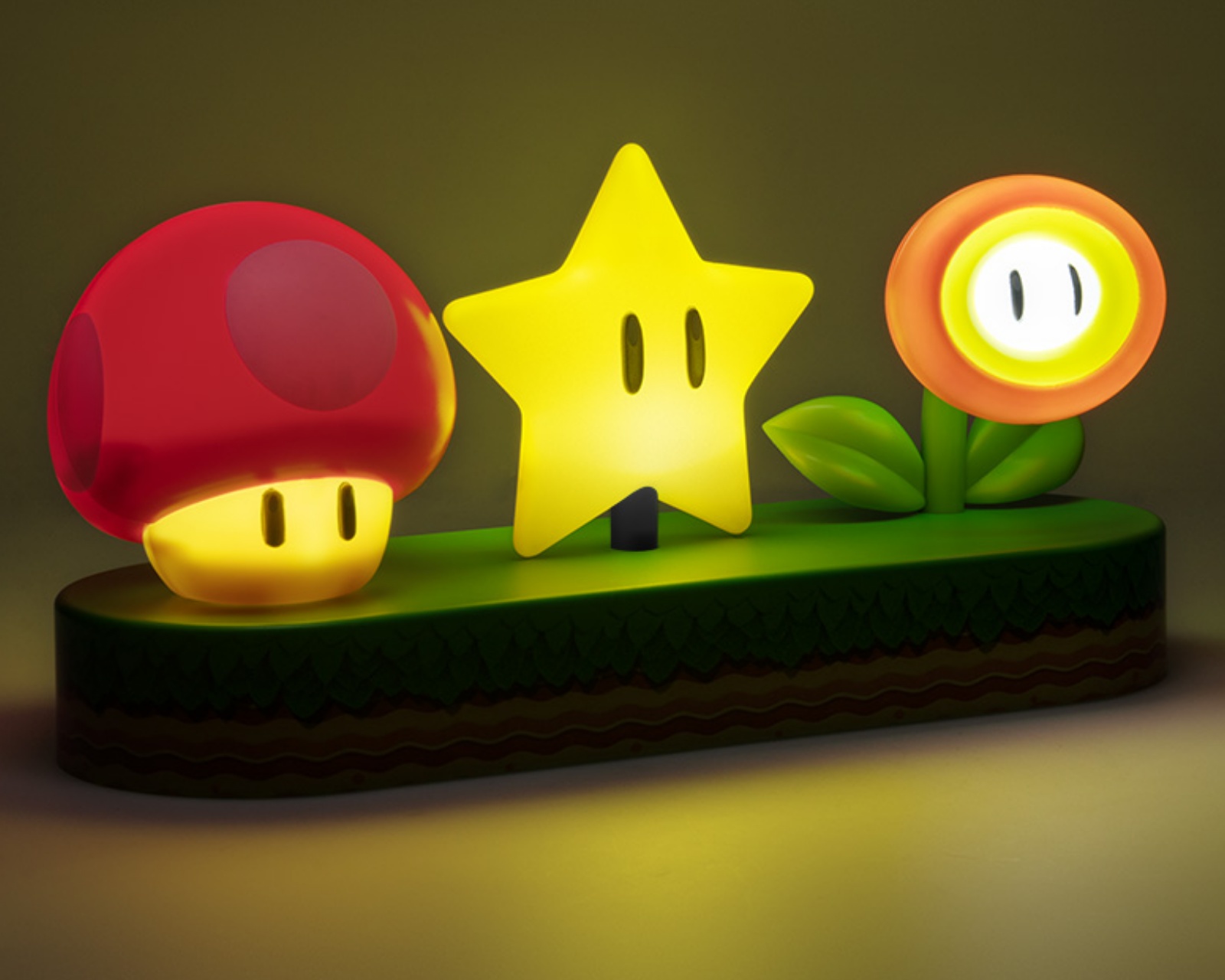 Super Mario™ Icons Light ist eine dekorative Tischlampe von Paladone, die Nostalgie und Anwendbarkeit kombiniert. Diese Beleuchtungslösung ist 30 cm breit und umfasst drei klassische „Power-up“-Gegenstände aus dem Super Mario-Universum: Super Mushroom, Super Star und Fire Flower. Diese aufregenden Details leuchten auf, wenn die Lampe eingeschaltet ist, was eine Atmosphäre schafft, die perfekt für Gamer und Fans von Super Mario ist.Die Lampe bietet attraktive Funktionen wie einen Beleuchtungsphasenmodus, in dem jedes Power-up nacheinander leuchtet, was unterhaltsame visuelle Effekte erzeugt. Darüber hinaus gibt es eine musikreaktive Funktion, die das Licht an den Klang anpasst, was das Erlebnis weiter verstärkt. Der Strom kann über USB (Kabel enthalten) oder mit 3 AAA-Batterien (nicht im Lieferumfang enthalten) bereitgestellt werden, was Flexibilität in der Nutzung bietet. Diese Lampe ist eine hervorragende Ergänzung für jeden Gamer, der eine inspirierende Spielumgebung schaffen möchte.