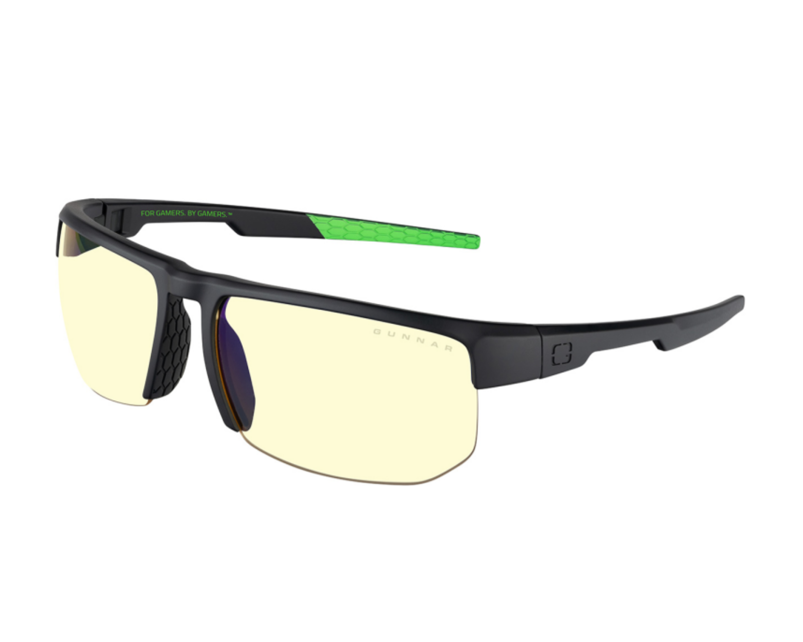 Torpedo-X Razer Edition ist ein Paar Gaming-Brillen von Gunnar Optiks, das entwickelt wurde, um die visuelle Ausdauer und den Fokus während langer Spielsitzungen zu verbessern. Diese leichten, nach hinten gewölbten Brillen sind mit GUNNARs patentierter "Amber"-Linse ausgestattet, die effektiv die Symptome der digitalen Augenbelastung verringert und 65 % des schädlichen blauen Lichts blockiert. Die Brillen haben ein semi-rahmenloses Design und einen breiten Nylonrahmen für eine maximale Panoramaansicht, die eine unerreichte Sicht während des Spielens bietet.Die Brillen sind aus hochwertigen Materialien gefertigt und verfügen über eine Wrap-around-Konstruktion, die zusammen mit GUNNARs Linsen dazu beiträgt, trockene Augen zu bekämpfen. Eine kostenlose, austauschbare Tempel mit Befestigung ist im Lieferumfang enthalten, was sie mit Headsets kompatibel macht und den Komfort erhöht. Die Brillen haben auch eine standardmäßige Antireflexbeschichtung sowohl vorne als auch hinten sowie eine schmutzabweisende Beschichtung.