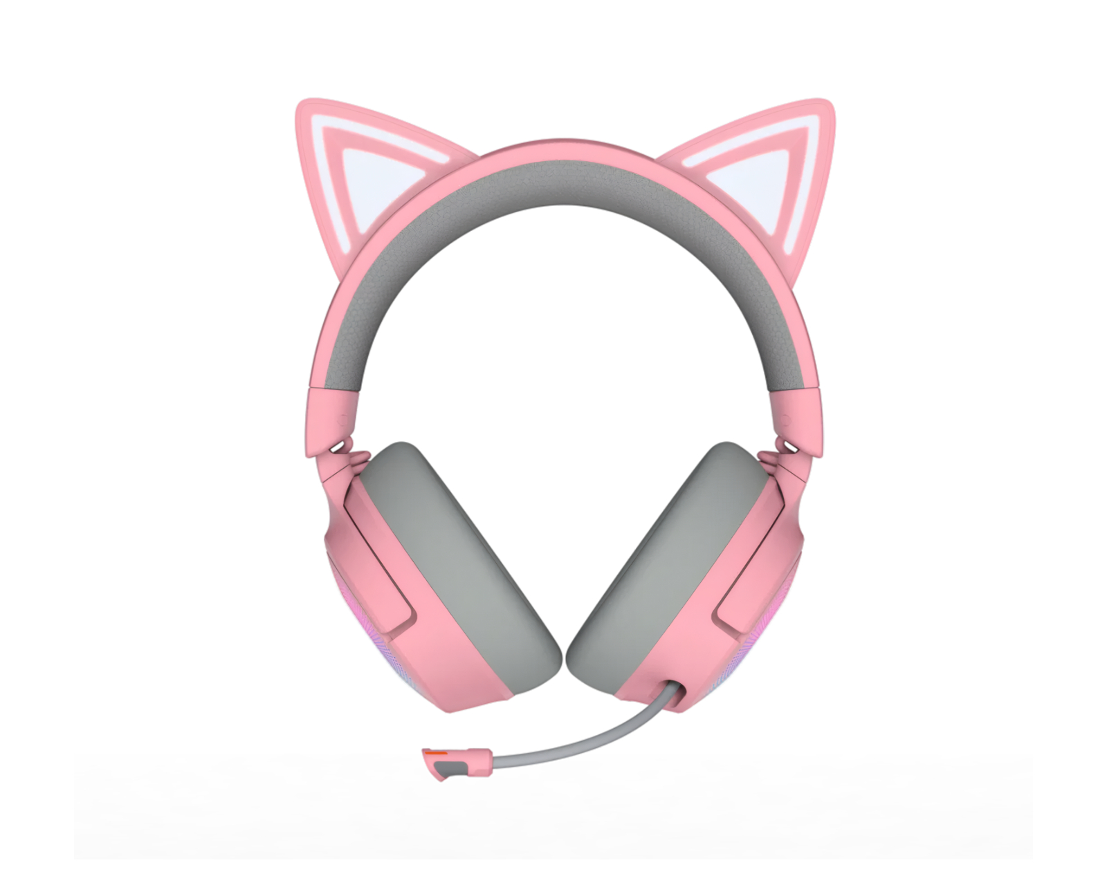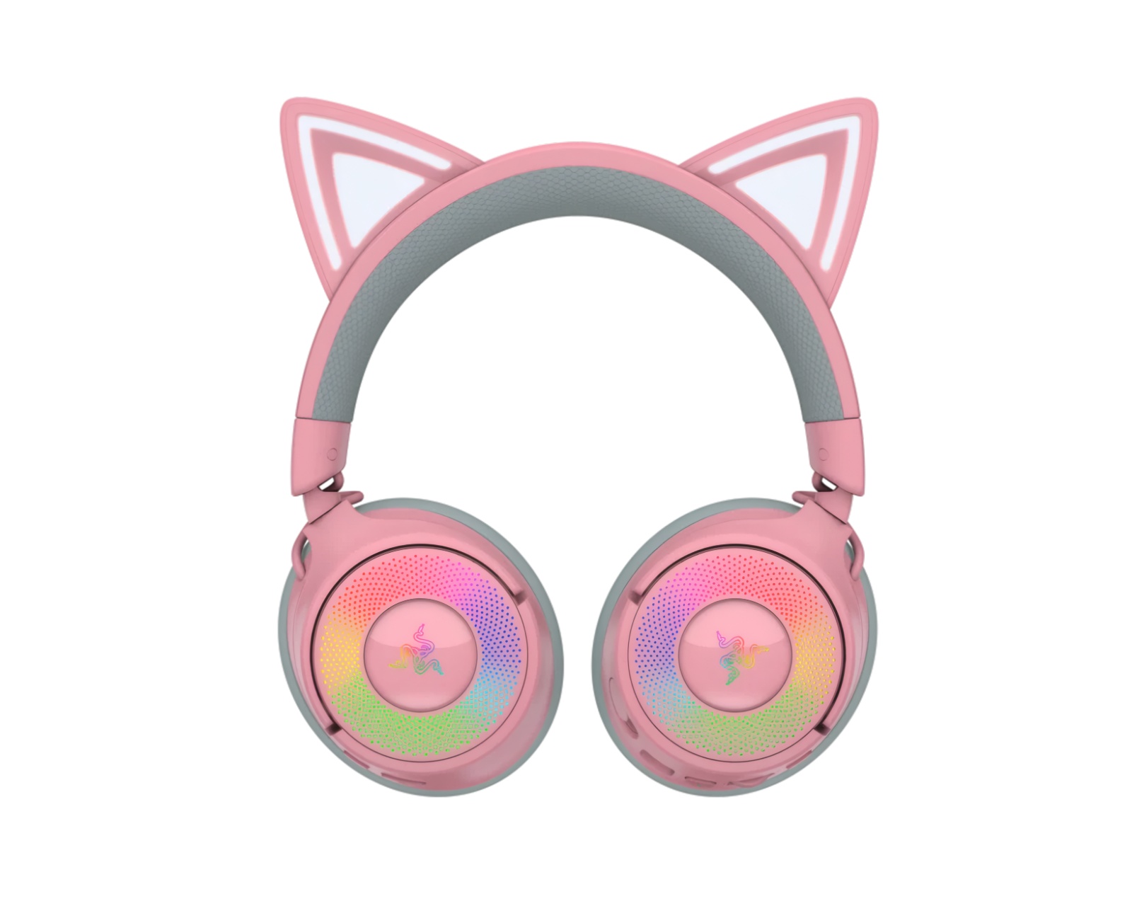 Kraken Kitty V3 Pro ist ein kabelloses Gaming-Headset von Razer, das mit charakteristischen Katzenohren und Razer Chroma™ RGB-Beleuchtung gestaltet wurde. Es bietet drei verschiedene Anschlussmöglichkeiten, einschließlich 2.4 GHz und Bluetooth 5.3, sowie ein superbreites Mikrofon für klare Tonwiedergabe. Dieses Headset richtet sich an Gamer, die Stil und Funktionalität während des Spielerlebnisses suchen.Das Headset verfügt über Ohrpolster aus Proteinleder mit Memory Foam für erhöhten Komfort und Geräuschisolierung. Das flexible und abnehmbare Razer™ HyperClear-Mikrofon hat eine breite Frequenzantwort, was dazu führt, dass die Stimme des Nutzers deutlich wiedergegeben wird. Die Razer™ TriForce Titanium 40 mm-Treiber bieten ein Klangerlebnis mit klaren Höhen, gleichmäßigen Mitten und tiefen Bassfrequenzen, was zu einem klaren und ausgewogenen Klangbild führt. Das Gerät unterstützt THX Spatial Audio für 7.1-Surround-Sound, was ein immersiveres Spielerlebnis ermöglicht.