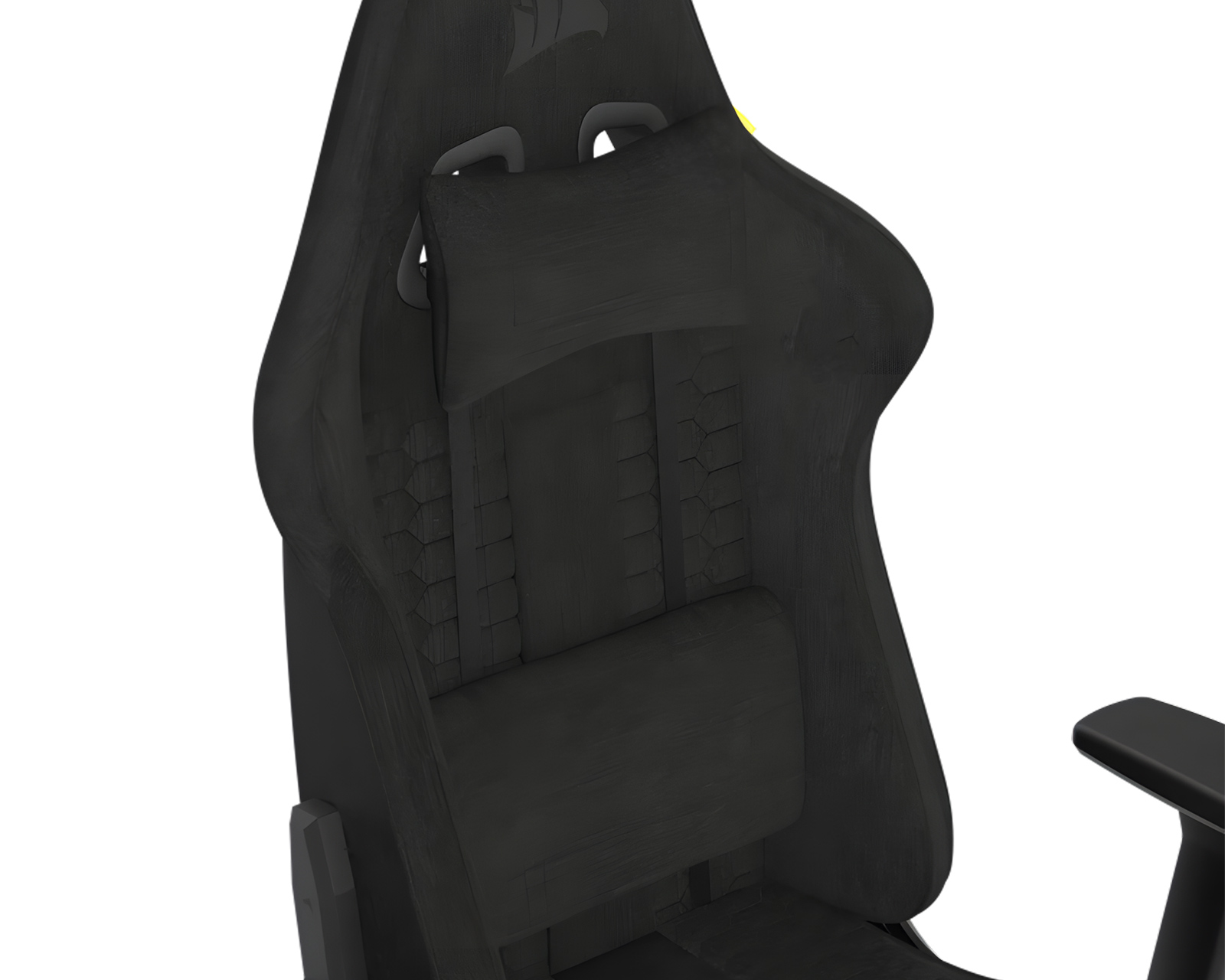 TC100 Relaxed ist ein Gamingstuhl von Corsair, der Unterstützung und Komfort bietet, insbesondere während längerer Spielsitzungen. Der Stuhl ist mit einem von Rennsport inspirierten Design gestaltet und verfügt über eine breitere Sitzfläche für erhöhten Komfort. Zu den wichtigsten Spezifikationen gehören eine verstellbare Rückenlehne, die zwischen 90° und 150° geneigt werden kann, sowie eine Sitzhöhe, die um bis zu 100 mm über eine Klasse 4 Gasfeder eingestellt werden kann.Der Stuhl ist mit einem weichen Stoff bezogen, der eine kühle und bequeme Oberfläche bietet und zu einem ergonomischen Benutzererlebnis beiträgt. Das mitgelieferte Kopfkissen, das abnehmbar und aus memory foam gefertigt ist, bietet individuell angepasste Unterstützung für den Nacken und fördert eine korrekte Sitzhaltung. Außerdem gibt es ein verstellbares Lendenkissen, das zusätzlichen Halt bietet, wenn er benötigt wird. Die Armlehnen sind ebenfalls sowohl vertikal als auch horizontal verstellbar, um feine Anpassungen des Komforts zu ermöglichen.