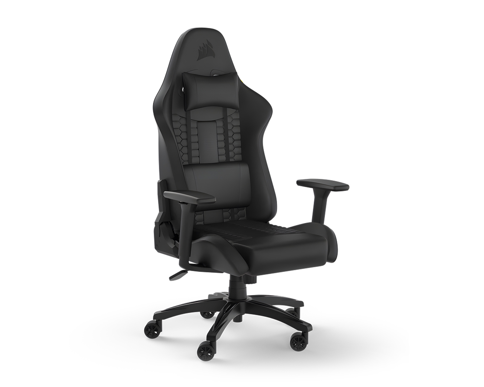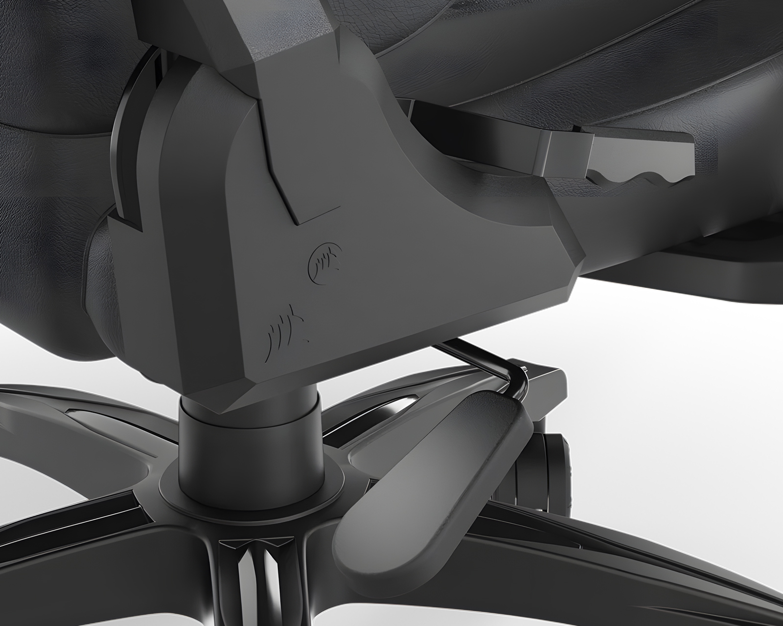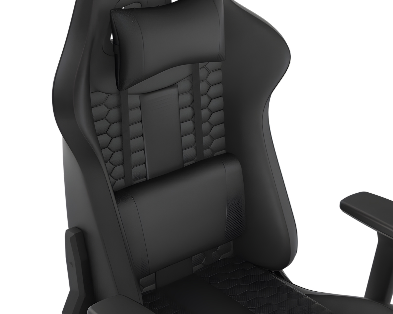Der Stuhl ist mit PU-Leder bezogen, was eine langlebige und leicht zu reinigende Oberfläche bietet. Er verfügt über verstellbare Armlehnen und ein Wippmechanismus für ein dynamischeres Sitzgefühl. Es liegen zwei zusätzliche Kissen bei; ein abnehmbares Lendenkissen und ein Nackenstützkissen aus Memory-Schaum für zusätzlichen Halt während längerer Spielesessions. Der Stuhl hat ein stabiles Gestell aus Stahl und eine Gasdruckfeder, die die Anpassung erleichtert. Das maximale Gewicht beträgt 120 kg, und er wiegt insgesamt 18 kg, was zur Stabilität des Stuhls beiträgt.