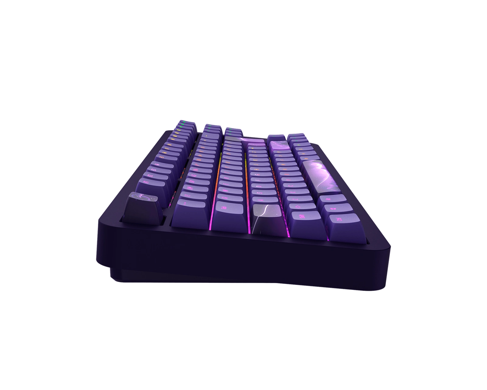 Die ALU87 Gaming Keyboard RGB - Celestial ist eine Tastatur von Dark Project für Gamer. Sie bietet ein Tenkeyless-Design und ist mit g3ms Voidstone-Schaltern ausgestattet. Die Aluminiumlegierung sorgt für Langlebigkeit und Stabilität, während die Polycarbonatplatte mit Flexcuts zur Geräuschreduzierung beiträgt. Die Akustik der Tastatur wird durch die Poron-Dämpfung unter der Platte und die PCBA gewährleistet, die einen weichen und leisen Tastenanschlag erzeugt. Die Tastenkappen bestehen aus einem CSA-Profil aus hochwertigem ABS-Kunststoff, das für Langlebigkeit und Verschleißfestigkeit sorgt.Zusammenfassung