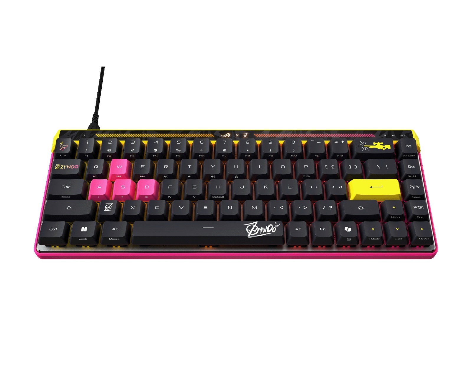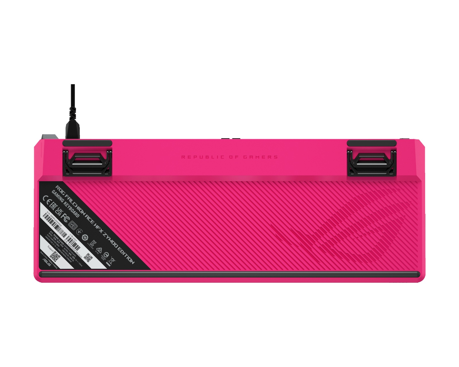 ROG Falchion Ace HFX ZywOo Edition ist eine kompakte Gaming-Tastatur von Asus, die entwickelt wurde, um die Leistung in Spielen zu maximieren. Mit den vorgeölt ROG HFX Magnetic Switches bietet sie einen einstellbaren Betätigungsweg von 0,1 – 4,0 mm für schnelle Reaktionen, was schnelle Tasteneingaben erleichtert und das Risiko von verpassten Tasten verringert. In Kombination mit einer hohen Abfragerate von 8000 Hz garantiert sie eine Reaktionszeit von 0,125 ms, was ein flüssiges Gameplay-Erlebnis schafft.Dieses Gerät hat eine robuste Konstruktion mit fünflagiger Dämpfung und einer Silikondichtung, die Geräusche absorbiert und ein weicheren Schreibgefühl bietet. Mit den doppelten USB Type-C® Anschlüssen kann der Benutzer einfach zwischen zwei Computern wechseln. Das interaktive Touchpad ermöglicht intuitive Steuerung für Medien, Lautstärkeanpassung und Beleuchtung. Die Tastatur ist auch mit ZywOo's charakteristischem Design gestaltet, das seine fokussierte Einstellung und Wettbewerbsgeist widerspiegelt.