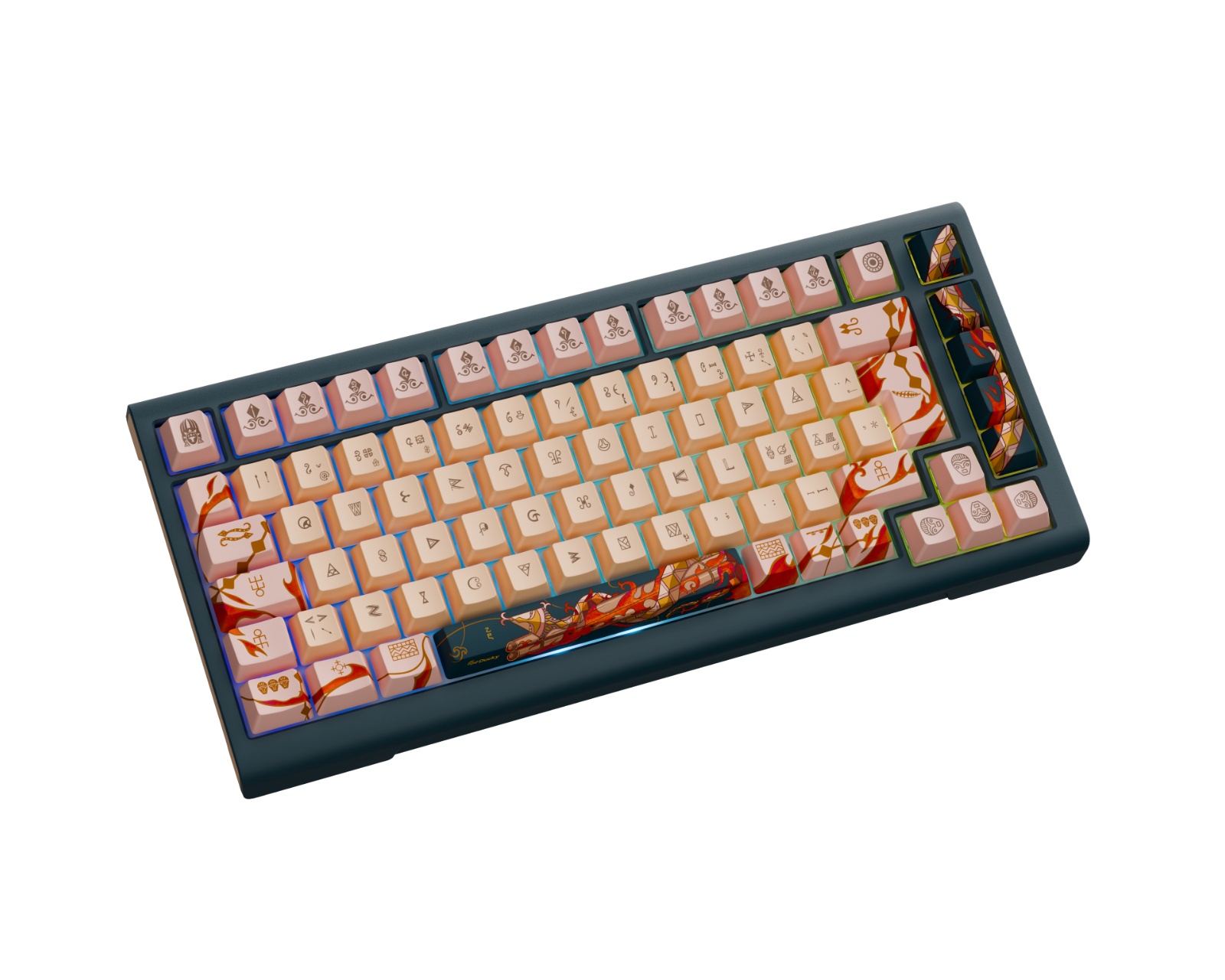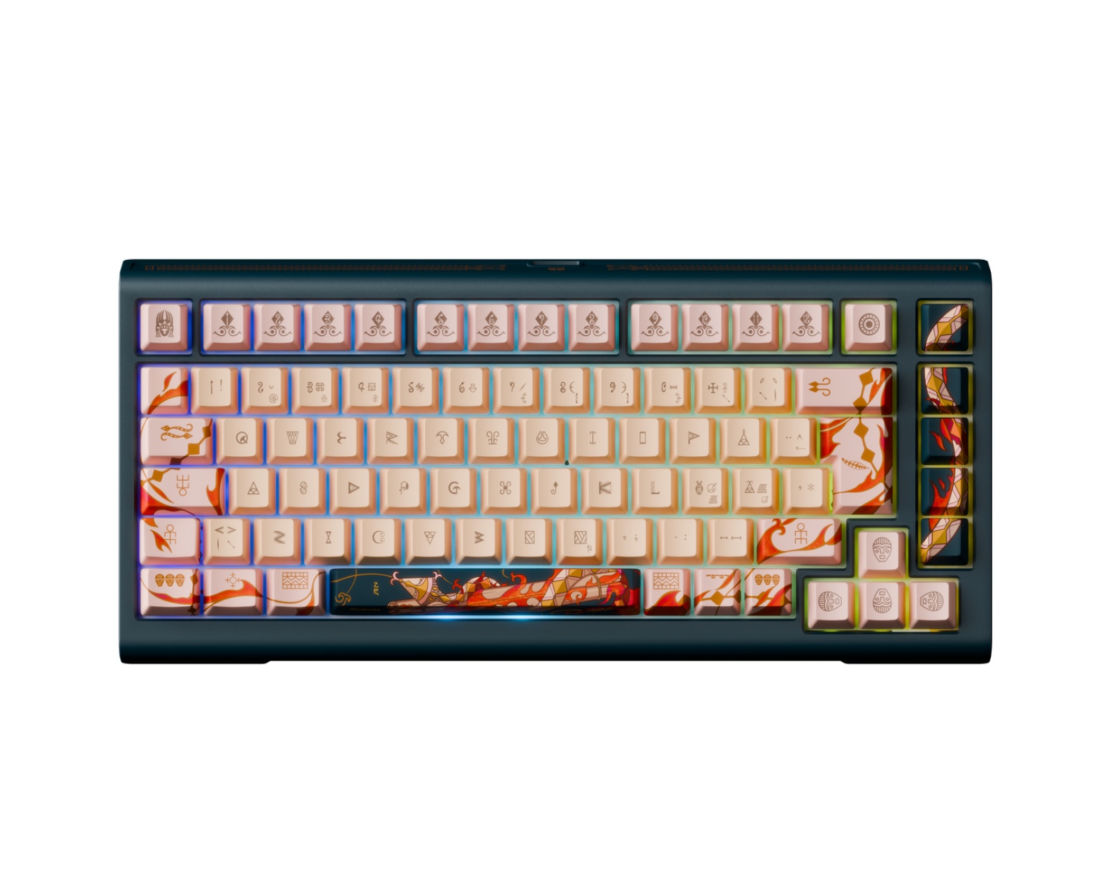 År der Schlange 2025 Limitierte Edition Tastatur ist eine Gaming-Tastatur von Ducky. Sie bietet eine einzigartige Konstruktion mit einem Gasket-Mount und einer FR4-Platte sowie echten Cherry MX2A-Schaltern. Die Tastatur richtet sich an Gamer und enthusiastsiche Nutzer, die ein anpassbares und technisch fortschrittliches Gerät wünschen.Die Tastatur hat eine nach Süden gerichtete RGB PCB mit Kailh Gelben Hotswap-Sockeln, die einen einfachen Wechsel der Schalter ermöglichen. Sie umfasst PE Switch-Dämpfer und Poron-Bodenfilz zur Verringerung des Geräuschpegels und zur Erhöhung des Komforts. Cherry-Profil-Tastenkappen mit dye-sublimierten Mustern gewährleisten dauerhafte Haltbarkeit und Klarheit im Design. Mit drei Stufen von anpassbaren Füßen und einem abnehmbaren geflochtenen USB-C-Kabel ist das Gerät sowohl funktional als auch benutzerfreundlich. Stabilitätslösungen werden durch schraubmontierte PCB-Stabilisatoren gewährleistet. Die marineblaue Oberseite und beige Unterseite, verziert mit detaillierter Kunst, verstärken den ästhetischen Wert der Tastatur. Die Tastatur ist auf 2025 Geräte weltweit limitiert.