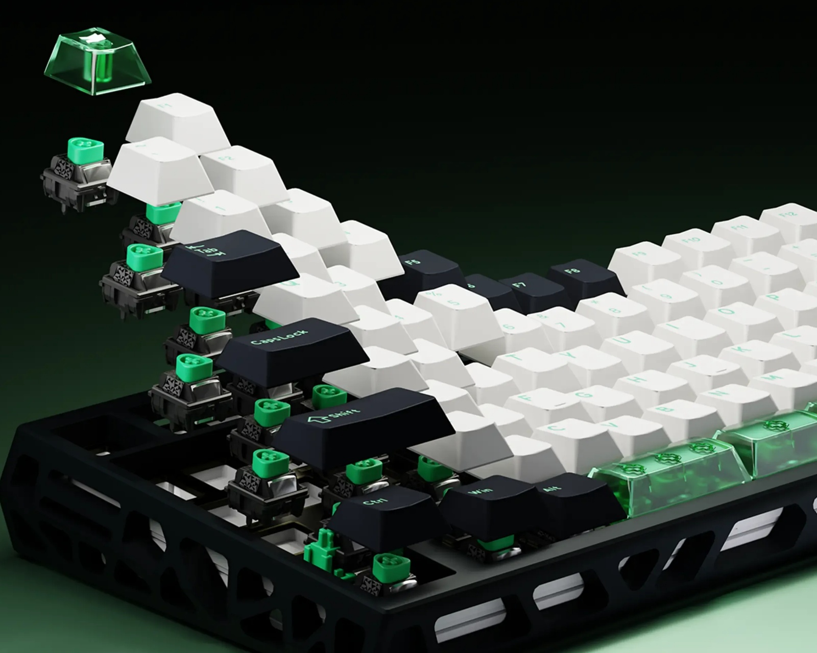 GATERON × Sikakeyb FORT 75 Magnetisches Tastatur ist eine Tastatur von Gateron, die eine Kombination aus hoher Präzision und langer Haltbarkeit bietet. Mit einer einzigartigen dreieckigen Struktur der Schalter wird eine konstante Aktivierung ohne Fehlklicks sichergestellt. Die Tastatur hat auch eine wasserdichte PCB mit voller Nano-Beschichtung, die vor Verschüttungen schützt und die Funktionalität über die Zeit aufrechterhält. Die Tasten verwenden Gaterons magnetische Jade Delta-Light-Schalter, die zur Stabilität und schnellen Aktivierung beitragen.Die Polling-Frequenz von bis zu 8K garantiert schnelle und reaktive Tastendrücke, was besonders vorteilhaft für wettbewerbsfähiges Gaming ist. Es ist auch möglich, die Beleuchtung und die Tasten anzupassen, um den Vorlieben des Benutzers zu entsprechen. Das patentierte Tri-Stage-Split-Space-Bar-System ermöglicht auch die Anpassung von Tastenkombinationen für jeden Teil, wodurch Gamern ein Vorteil verschafft wird, da schnellere Ausführungen mehrerer Aktionen ermöglicht werden.