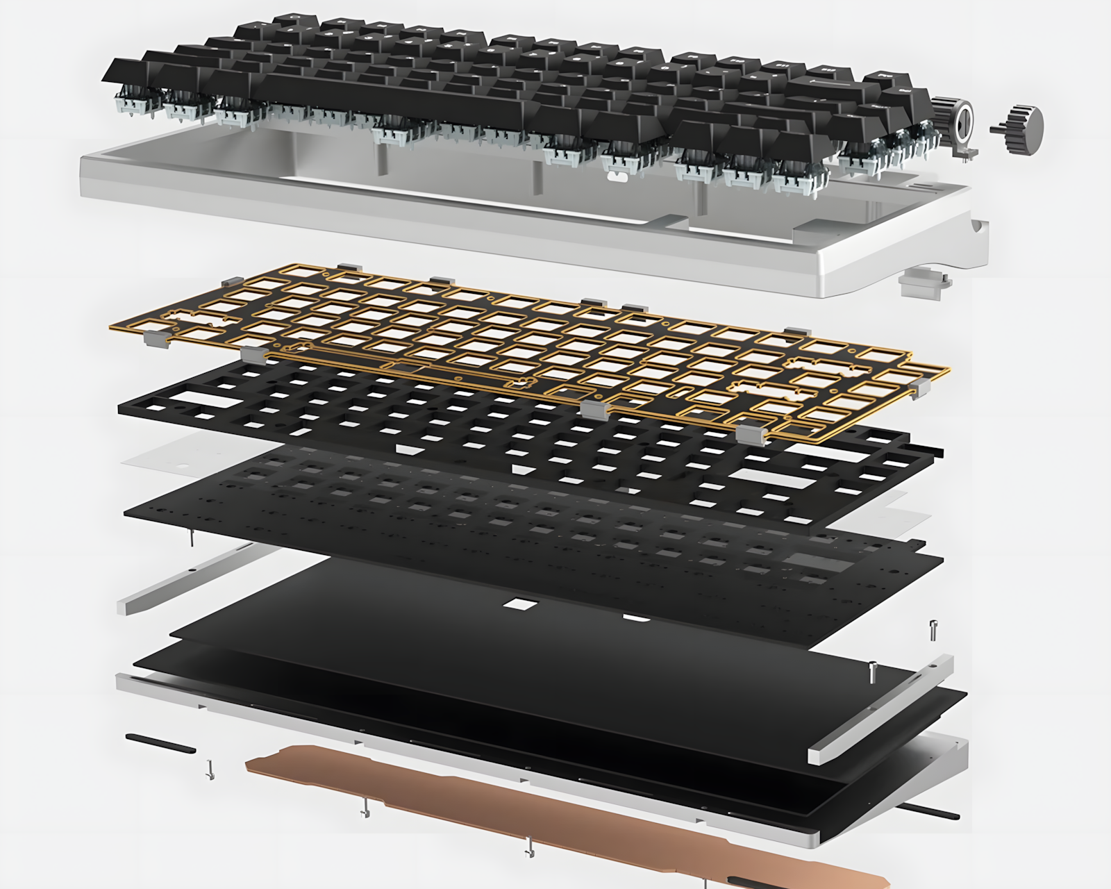 Titan 75HE Tastatur ist eine kompakte Tastatur von Titan, die fortschrittliche Switches und Verarbeitungsqualität in einer All-in-One-Lösung für Gamer und Enthusiasten kombiniert. Mit den maßgeschneiderten Titan HE-Switches, die in Zusammenarbeit mit Gateron entwickelt wurden, wurde sie für ein responsives und genaues Spielerlebnis gebaut. Die Tastatur ist außerdem mit dicken 1,7 mm Tastenkappen ausgestattet, die einen tiefen Klang erzeugen und es den Legenden ermöglichen, durchzukommen.Die Verarbeitungsqualität, die durch die CNC-bearbeitete Aluminiumkonstruktion gewährleistet ist, vermittelt ein robustes und hochwertiges Gefühl. Das Hot-Swappable-Design ermöglicht es, abgenutzte Switches einfach ohne Löten auszutauschen, was die Flexibilität für Benutzer erhöht, die ihr Setup anpassen möchten. Mit einem gasket-montierten Design, das mehrere Schichten Poron-Schaum und eine FR4-Platte umfasst, wird das Klangprofil optimiert, was zu einem gedämpfteren und angenehmeren Klangerlebnis führt. Die Tastatur ist mit einem benutzerfreundlichen Webtreiber für die Programmierung von Makros und Einstellungen ausgestattet, einschließlich RT, SOCD und DKS.